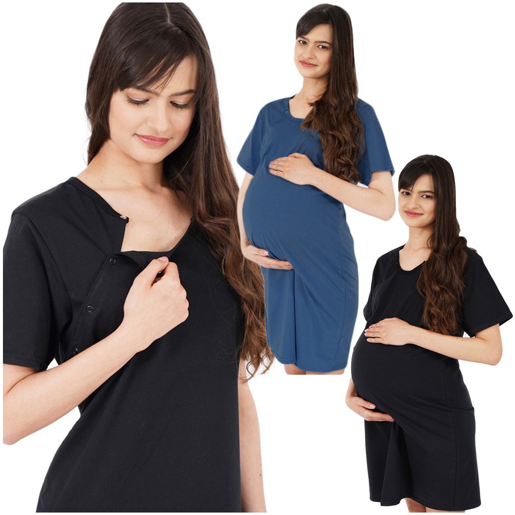 2pak koszul nocnych ciążowych to niezbędna bielizna dla młodej mamy. Będzie przydatna w domu, jak i przed porodem w szpitalu.