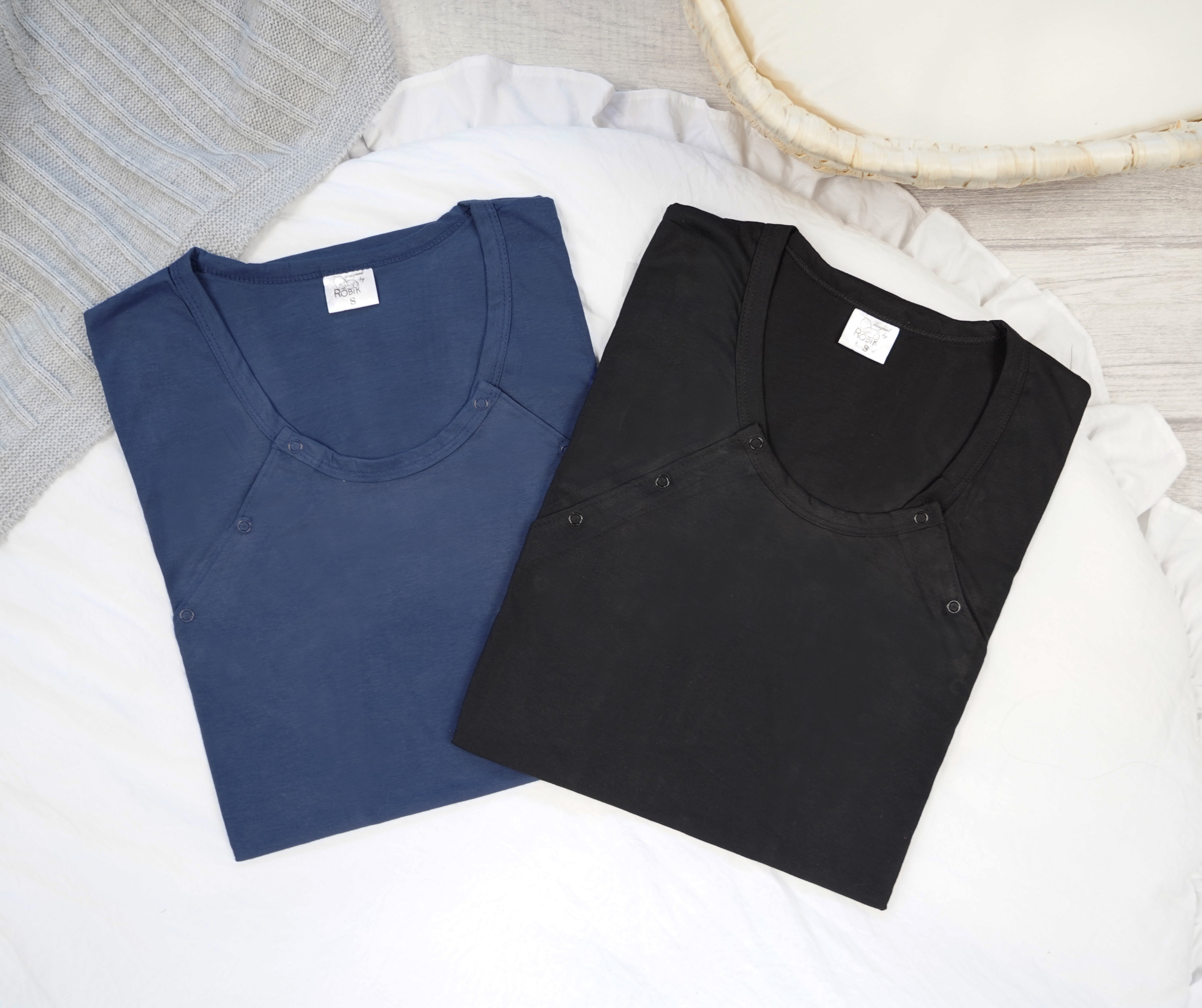 2 praktyczne nocne koszule dla mam w kolorze czarnym i granatowym zapinane na napy