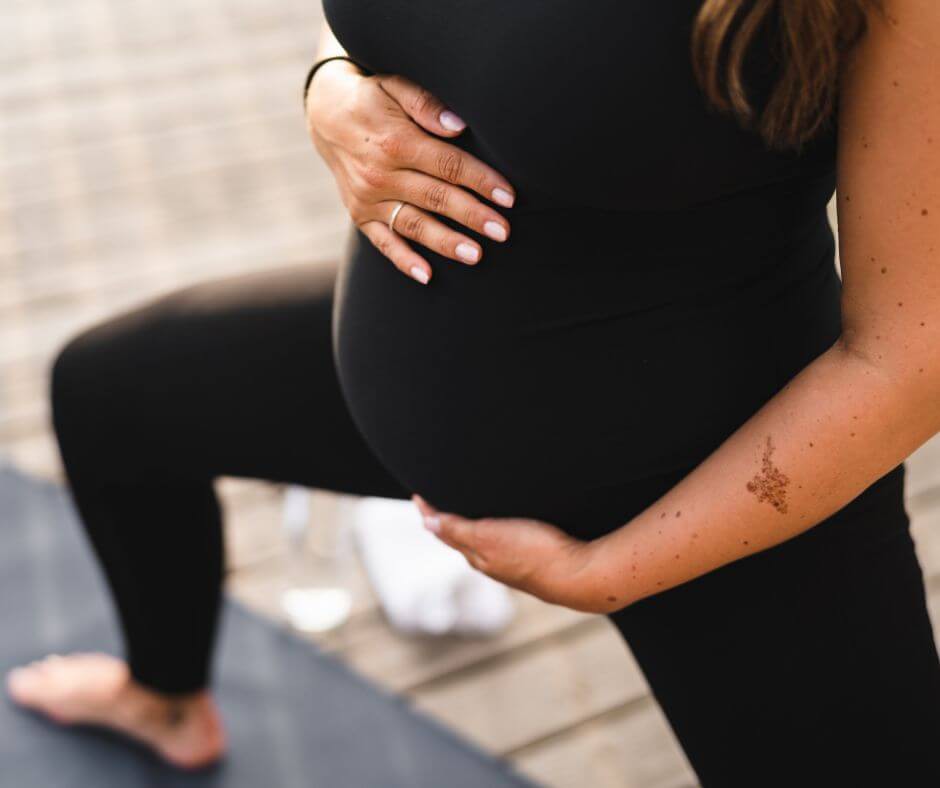 Wsparcie dla rosnącego brzucha - elastyczny panel w górnej części legginsów tzw. wysoki stan doskonale dopasowuje się do zmieniającego się kształtu ciała w trakcie ciąży