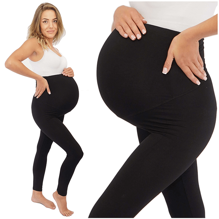 Wygodne legginsy ciążowe wykonane z miękkiego materiału, pasującego na brzuszek w I, II i III trymestrze ciąży w kolorze czarnym.
