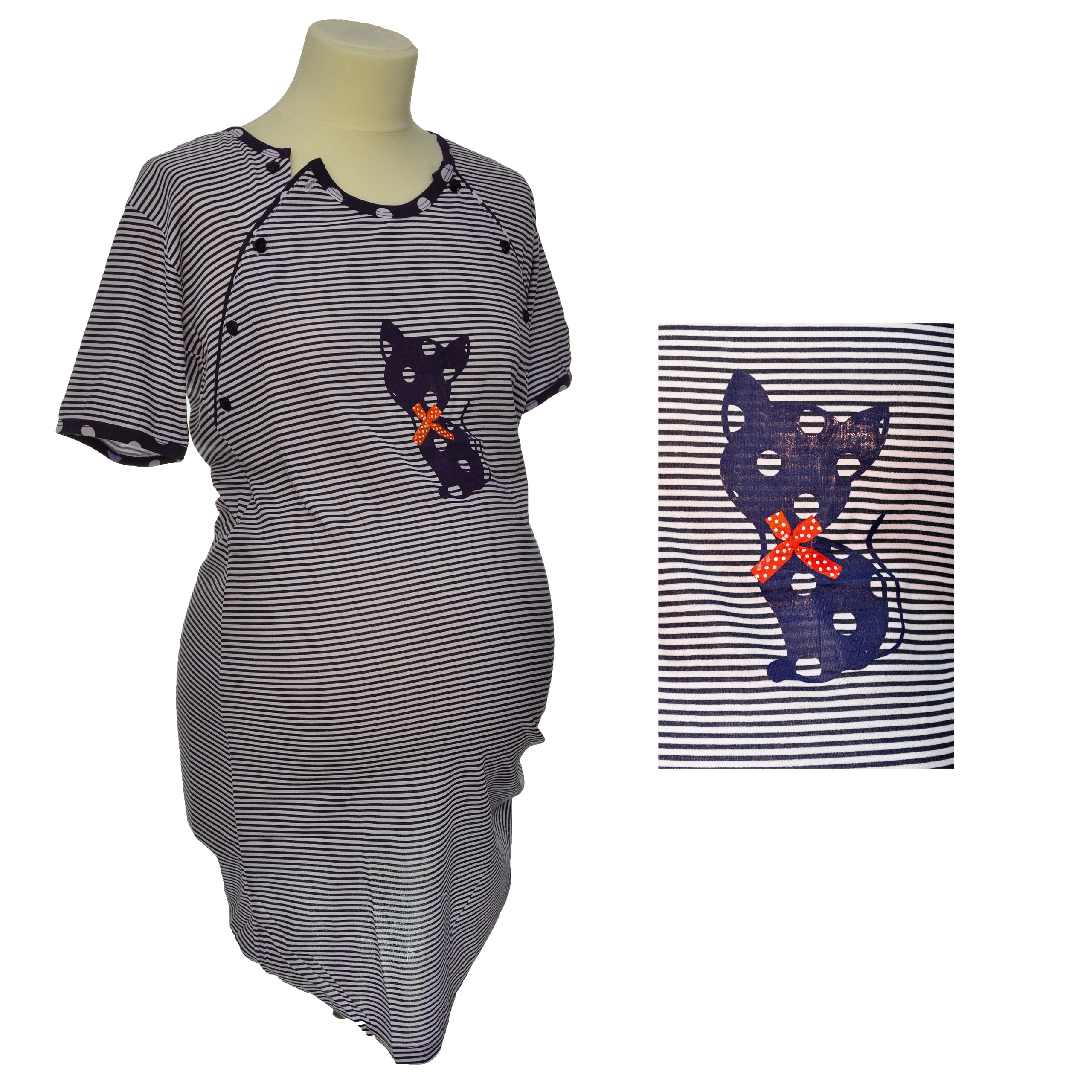 KOSZULA NOCNA CIĄŻOWA KOTEK GRANATOWY DO KARMIENIA