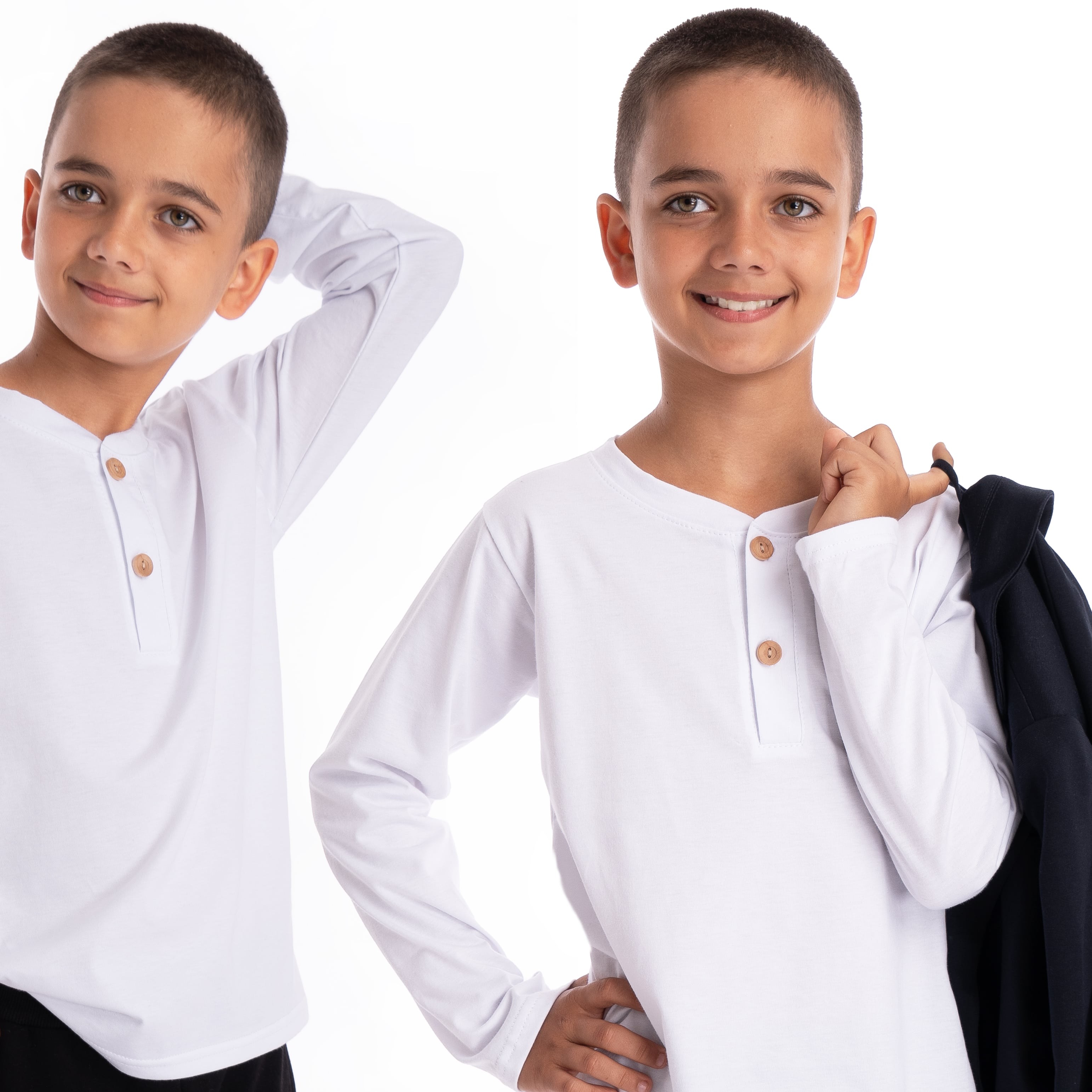 Biała chłopięca bluzka KOSZULKA Z GUZIKAMI elegancka długi rękaw szkoła