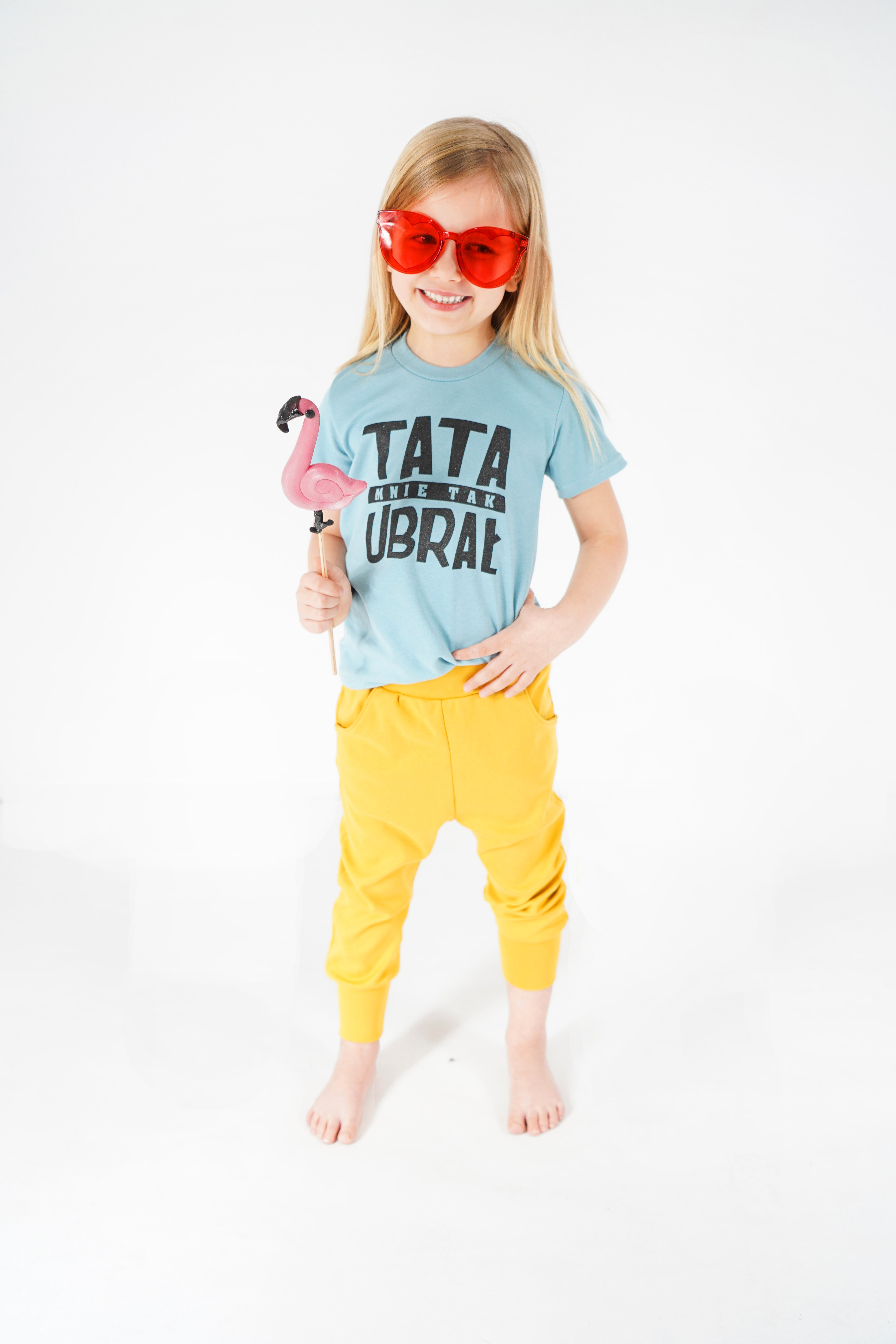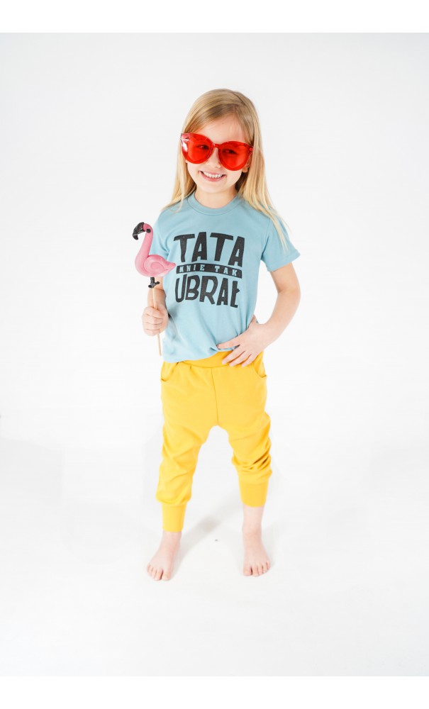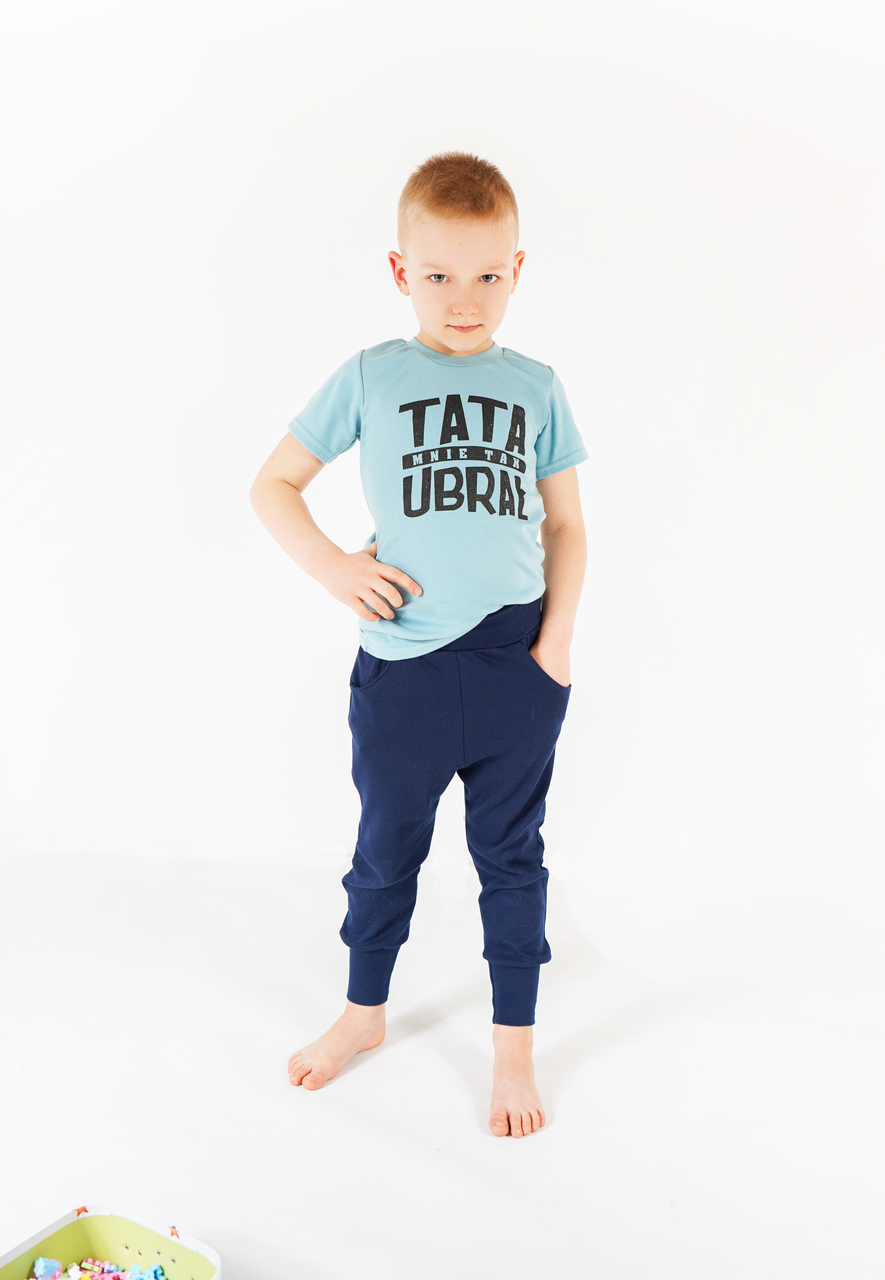 Koszulka idealna na dziewczynkę i chłopca w kolorze zielonym z krótkim rękawem oraz napisem: TATA MNIE TAK UBRAŁ