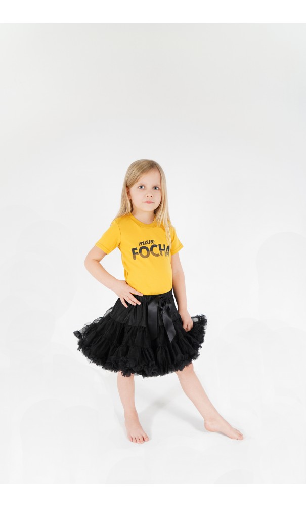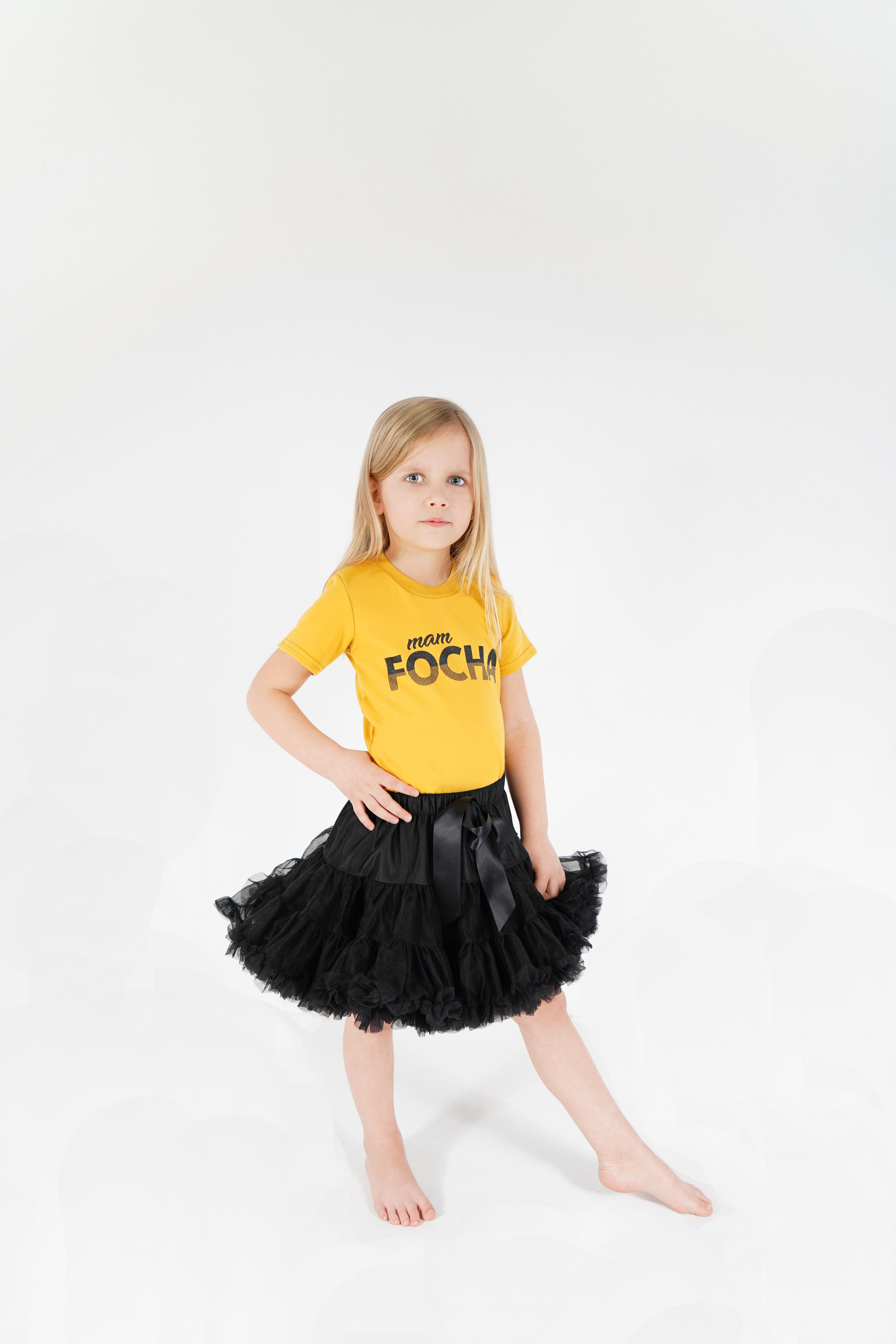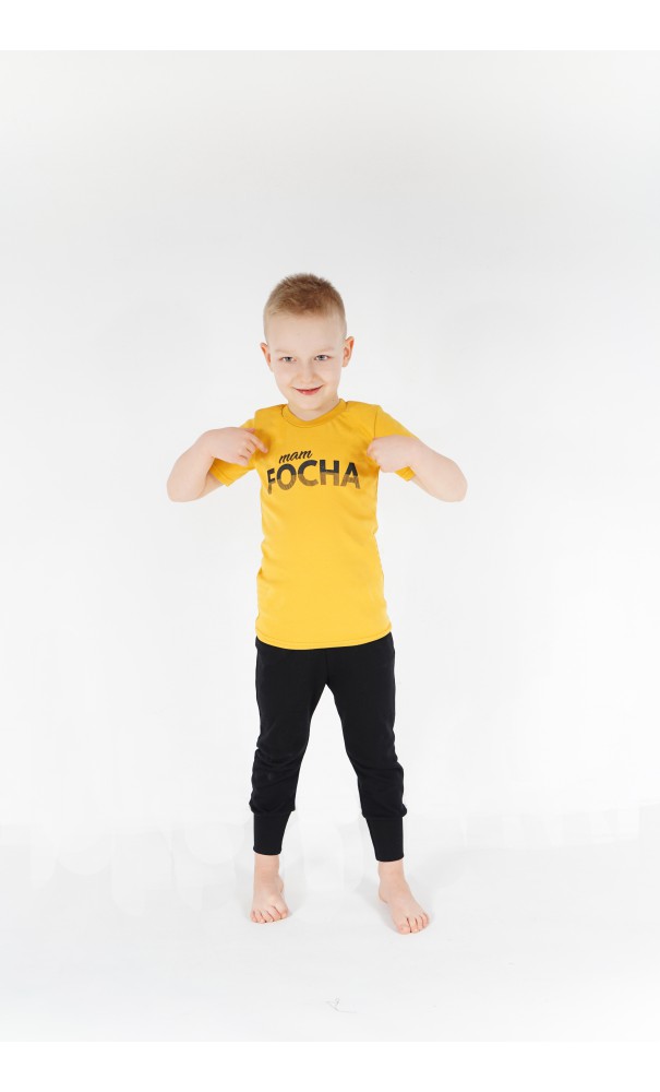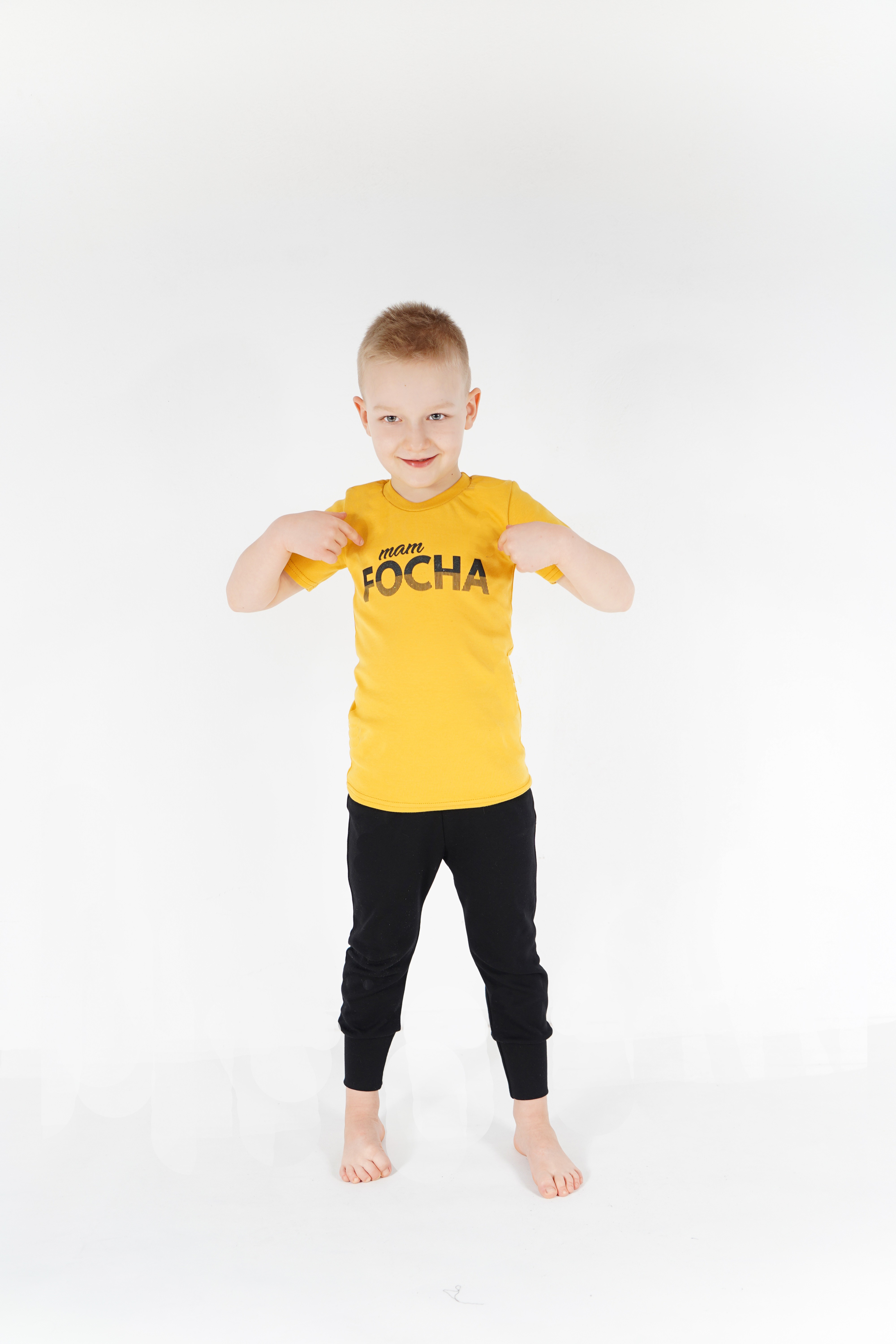 Koszulka idealna na dziewczynkę i chłopca w kolorze musztardowym z krótkim rękawem oraz napisem: MAM FOCHA.