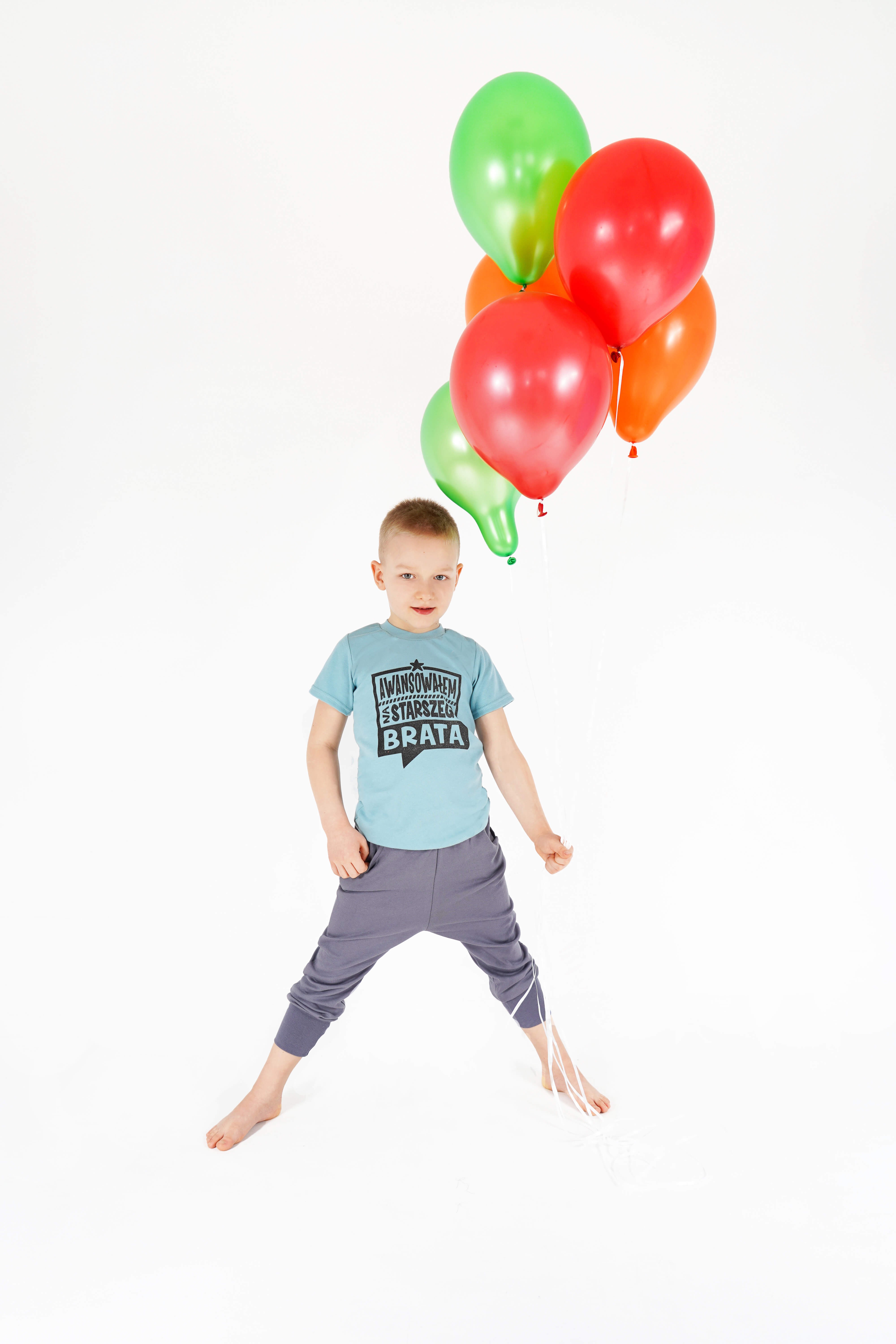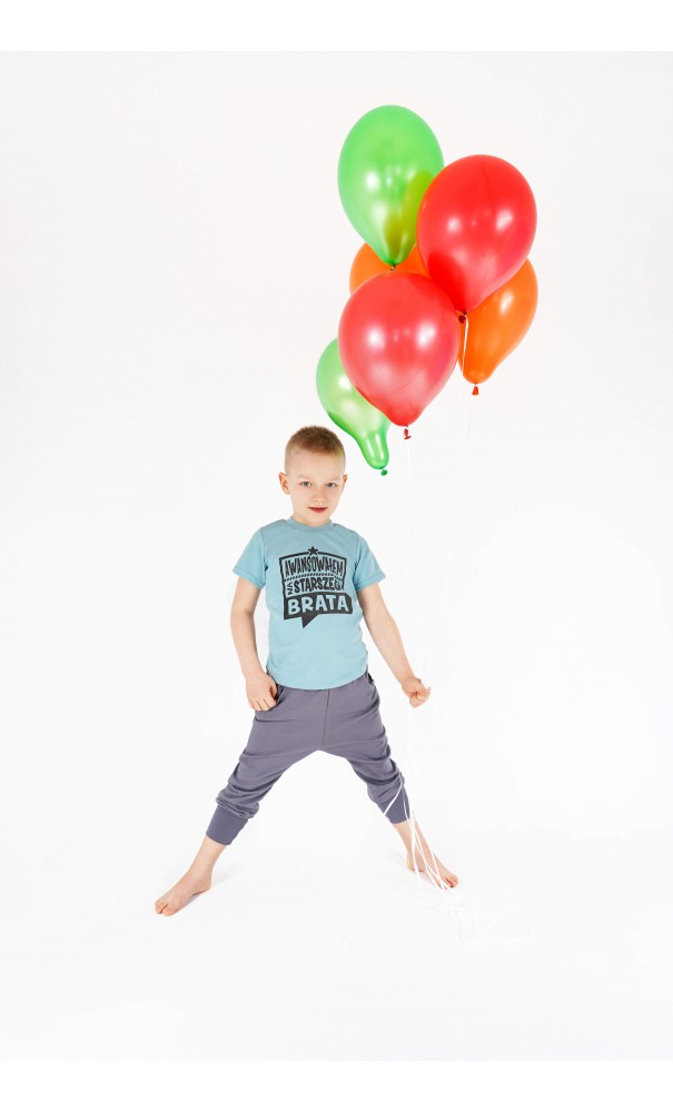 Koszulka idealna na chłopca w kolorze zielonym z krótkim rękawem oraz napisem: AWANSOWAŁEM NA STARSZEGO BRATA.