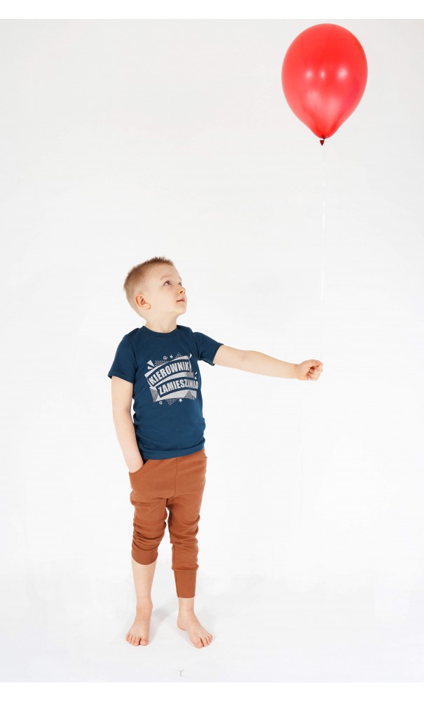 Koszulka idealna na chłopca w kolorze granatowym z krótkim rękawem oraz napisem: KIEROWNIK ZAMIESZANIA.