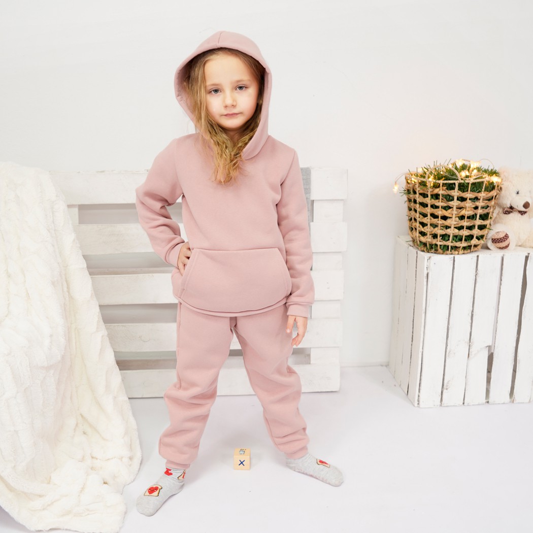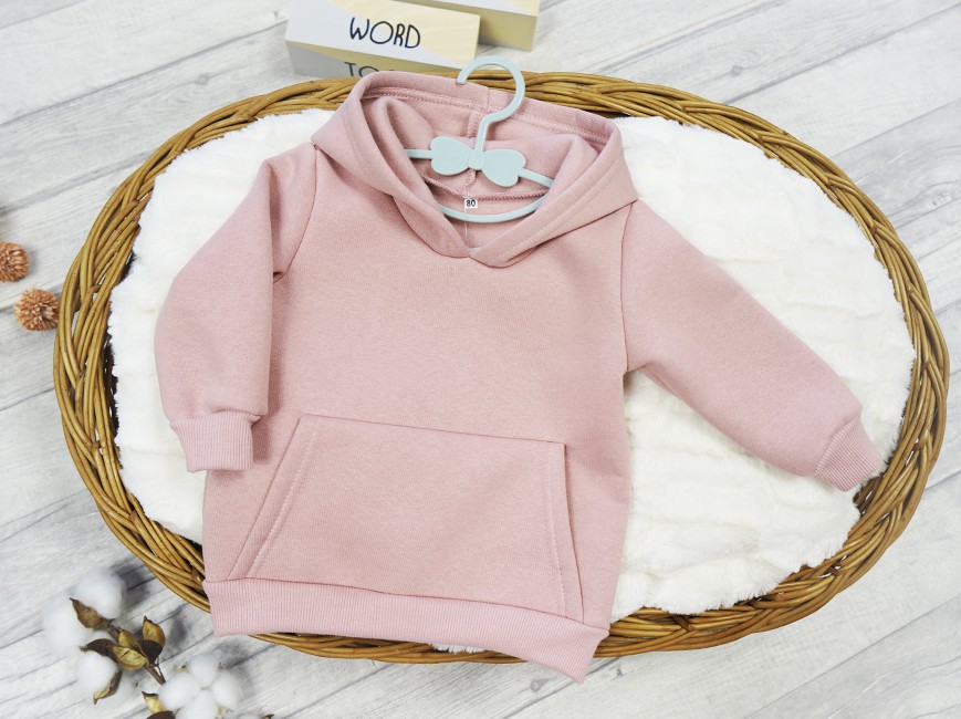 Bluza dziewczęca, ocieplana kangurka w kolorze pudrowego różu.