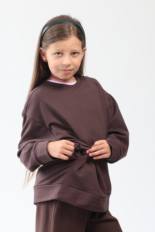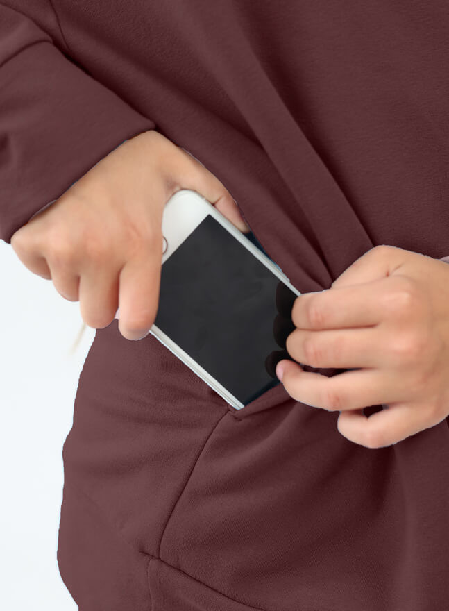 Bluza dresowa na meszku w kolorze brązowym z ukrytą kieszenią na telefon w kolorze brązowym.