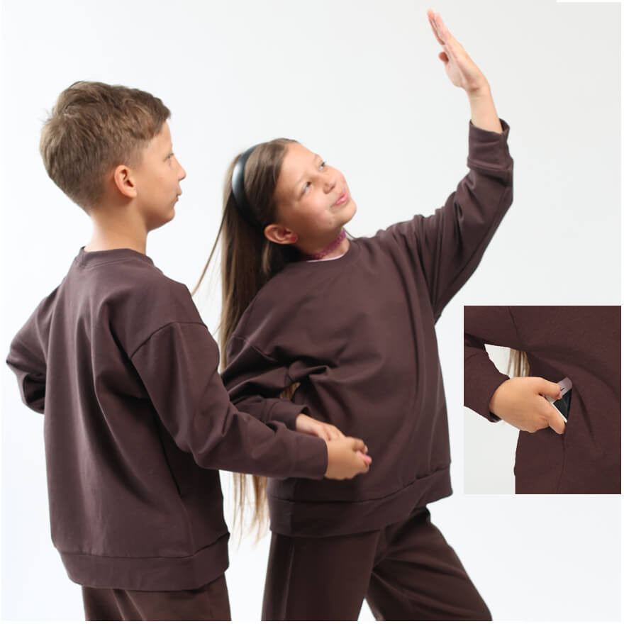 Bluza dresowa BEAT brązowa NA MESZKU z UKRYTĄ KIESZENIĄ NA TELEFON