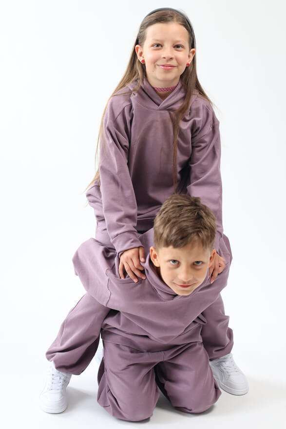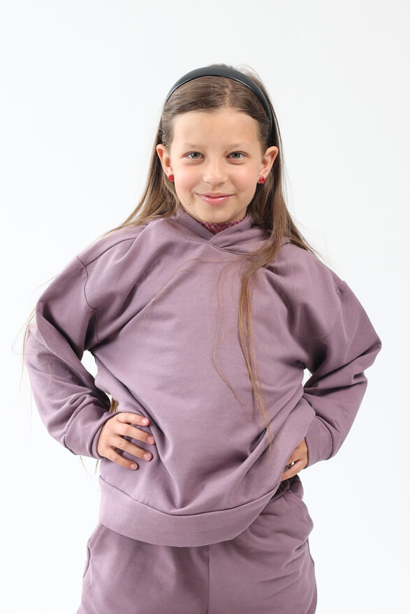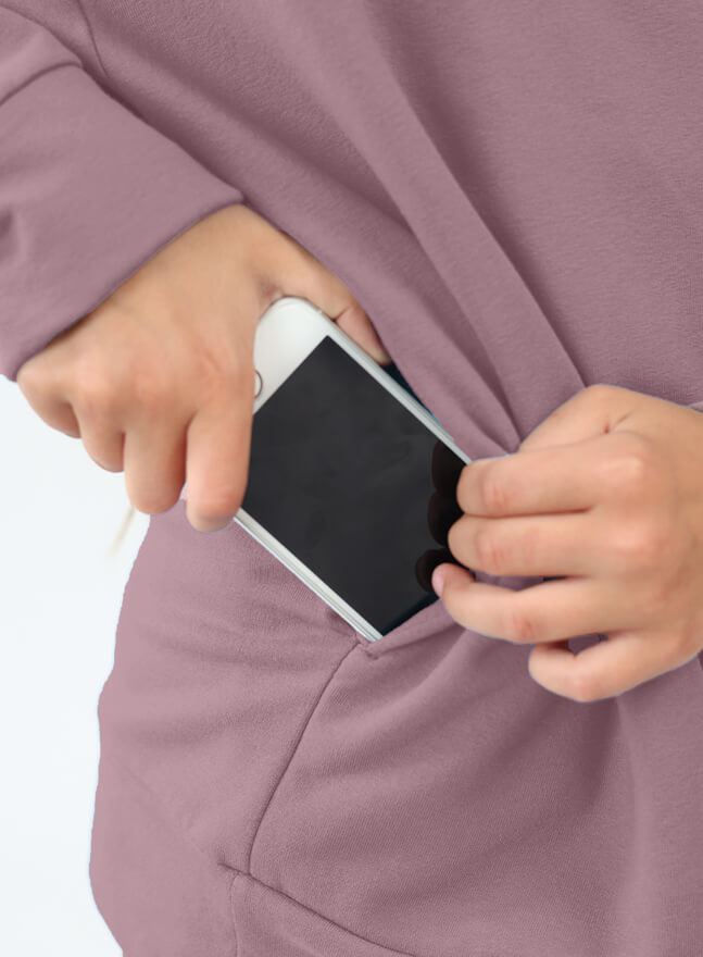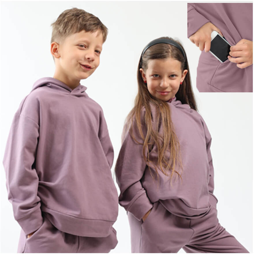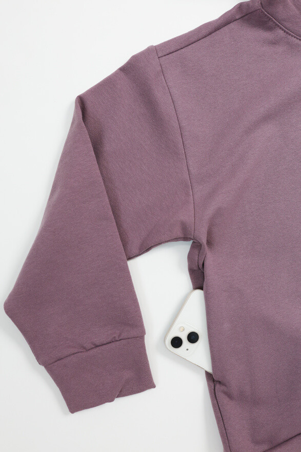 Bluza dresowa na meszku z UKRYTĄ KIESZENIĄ NA TELEFON w kolorze fioletowym.