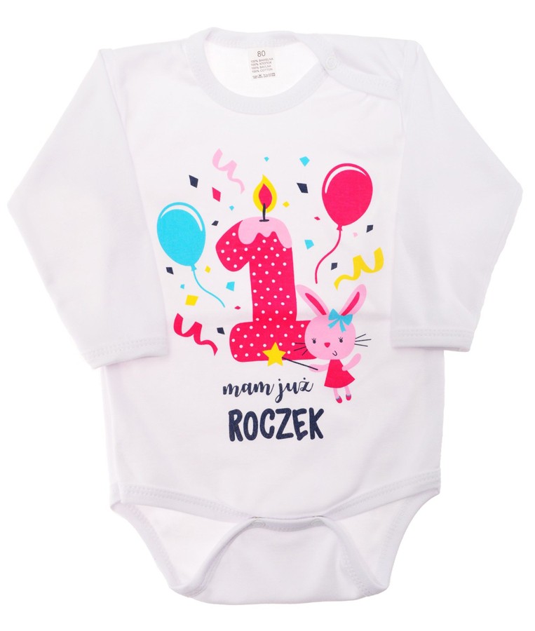 Śliczne dziewczęce body "Mam już roczek" z długim rękawem