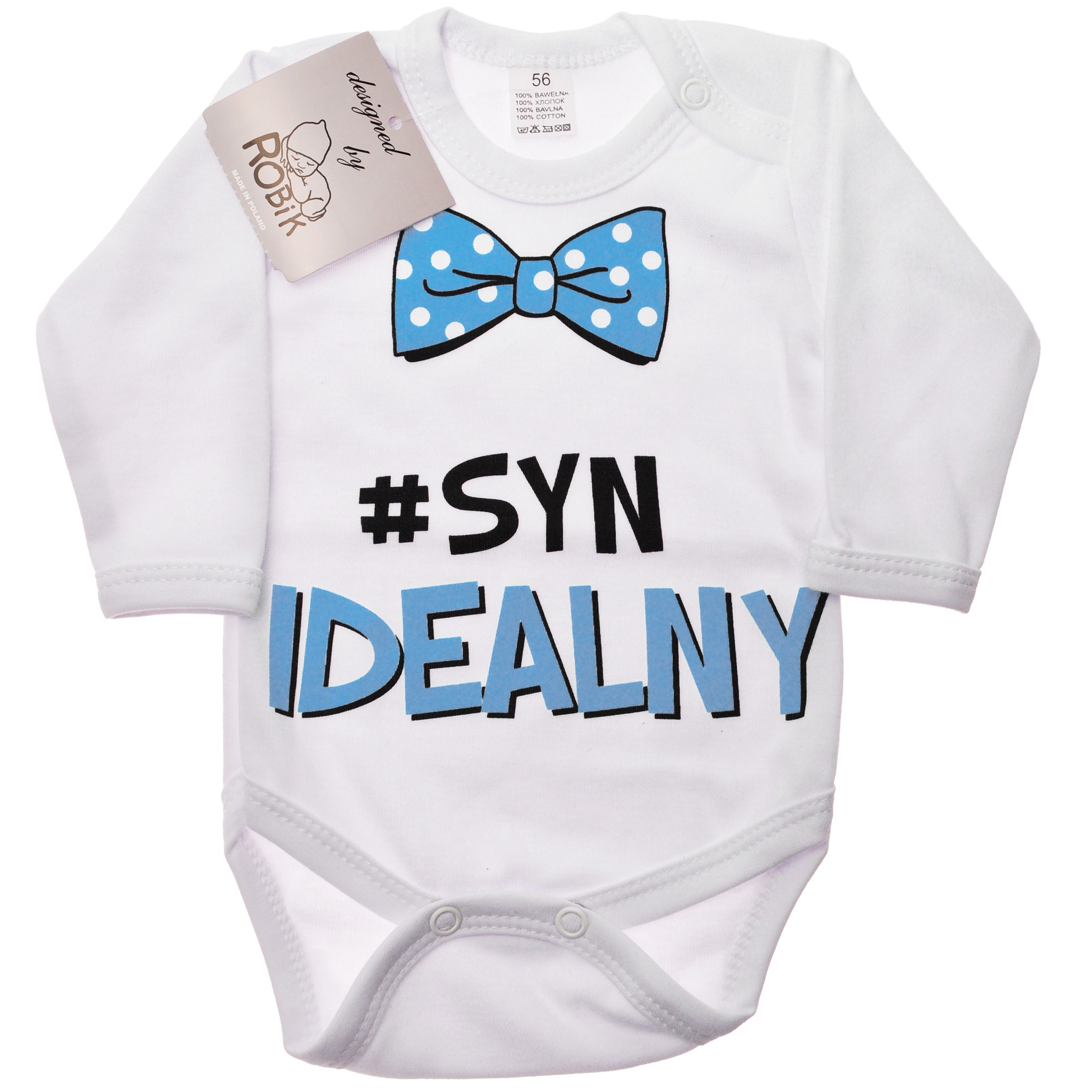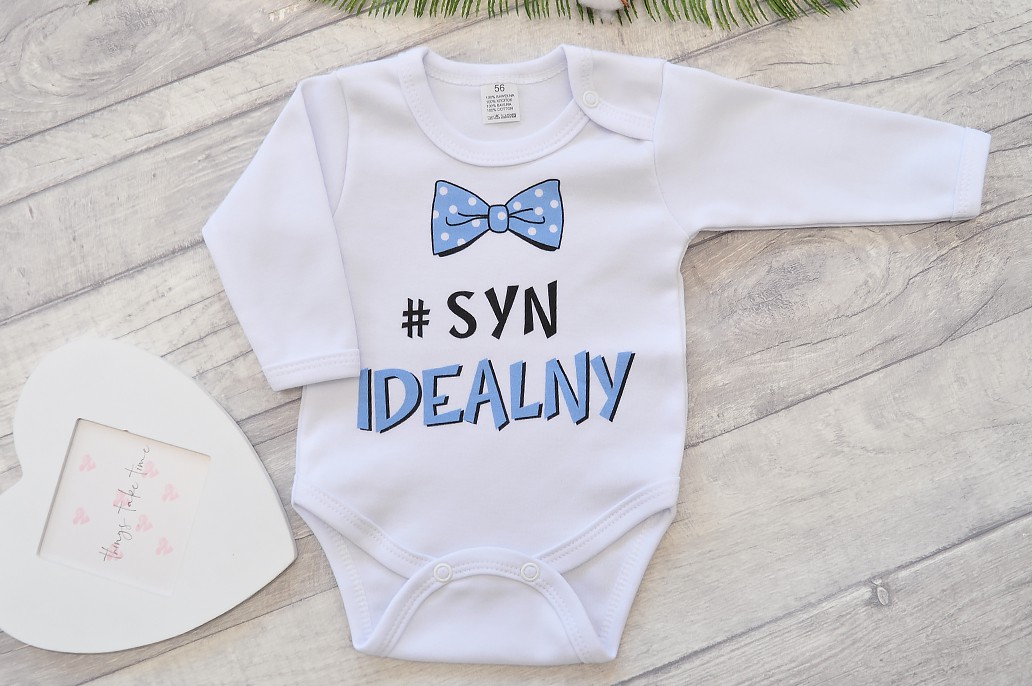 Body dla chłopca z długim rękawem z muszką i napisem: "#SYN IDEALNY".