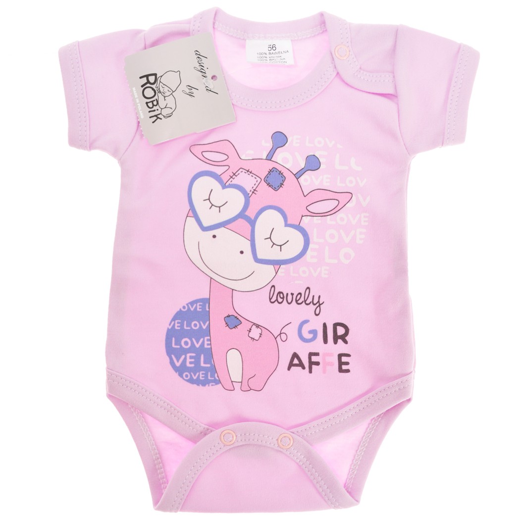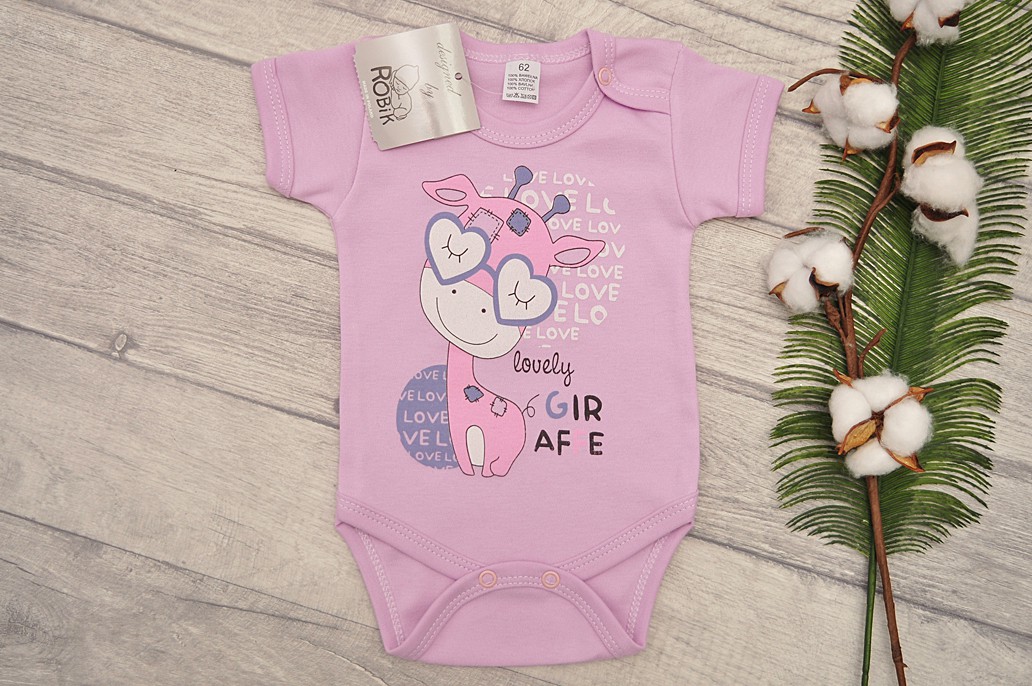 Fioletowe BODY z żyrafą krótki rękaw LATO wzór 587kr