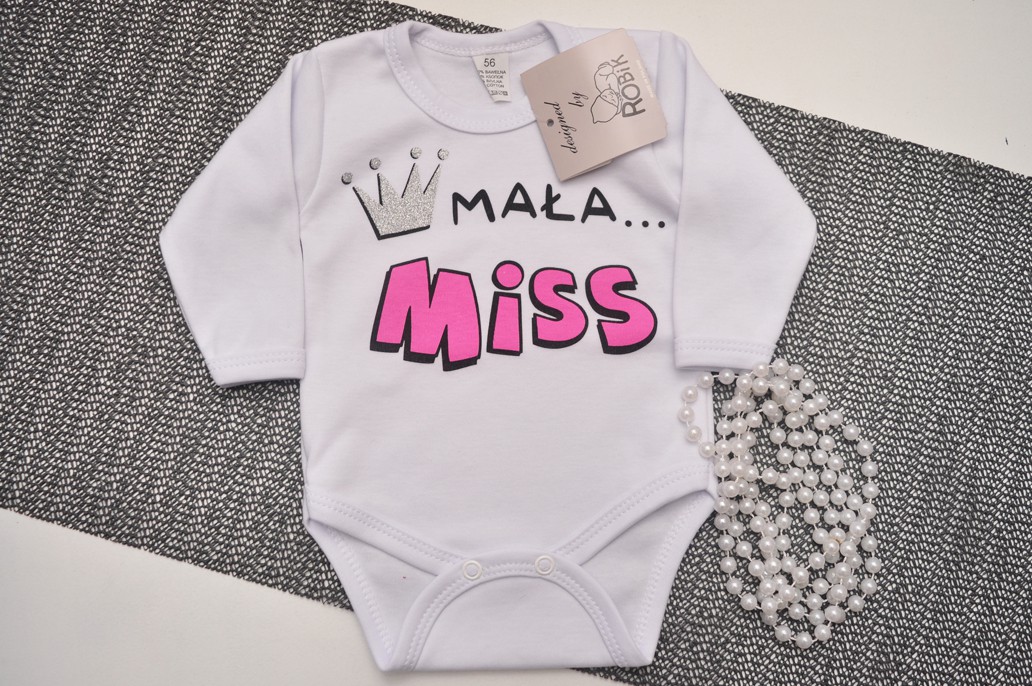 Białe BODY MAŁA MISS długi rękaw brokat wzór 600