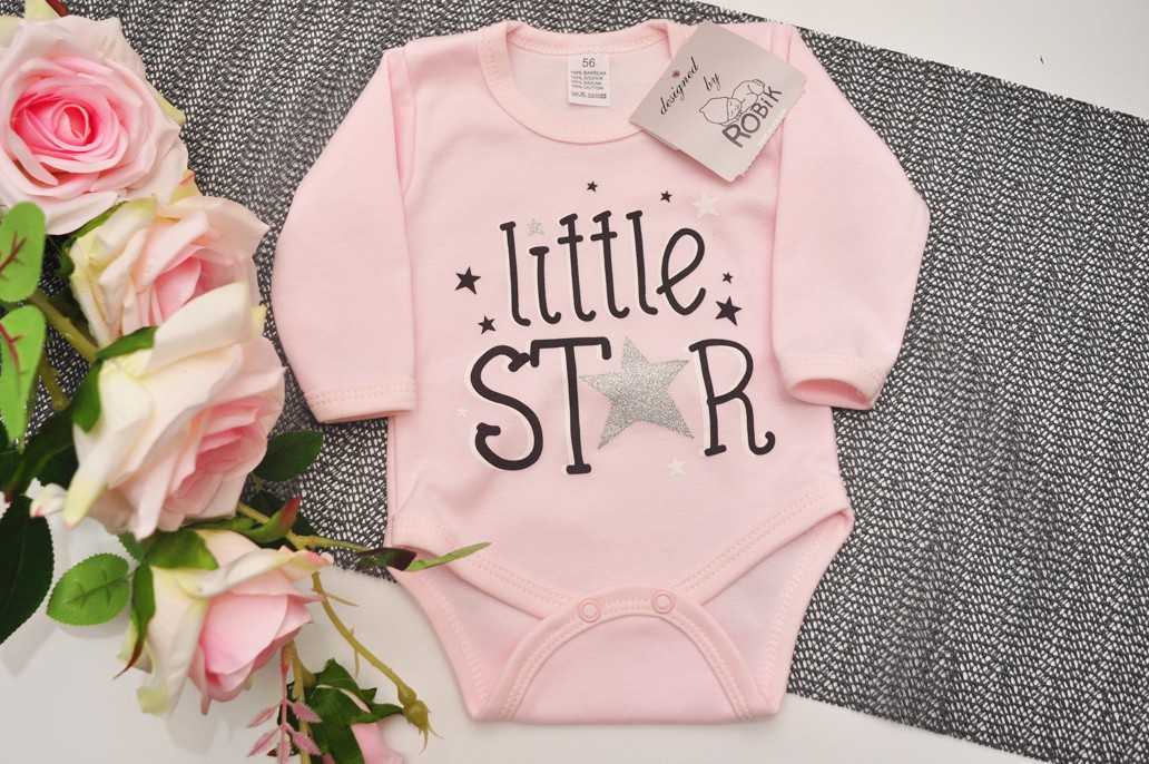 Body dla dziewczynki z długim rękawem z brokatową gwiazdą i napisem Little Star.