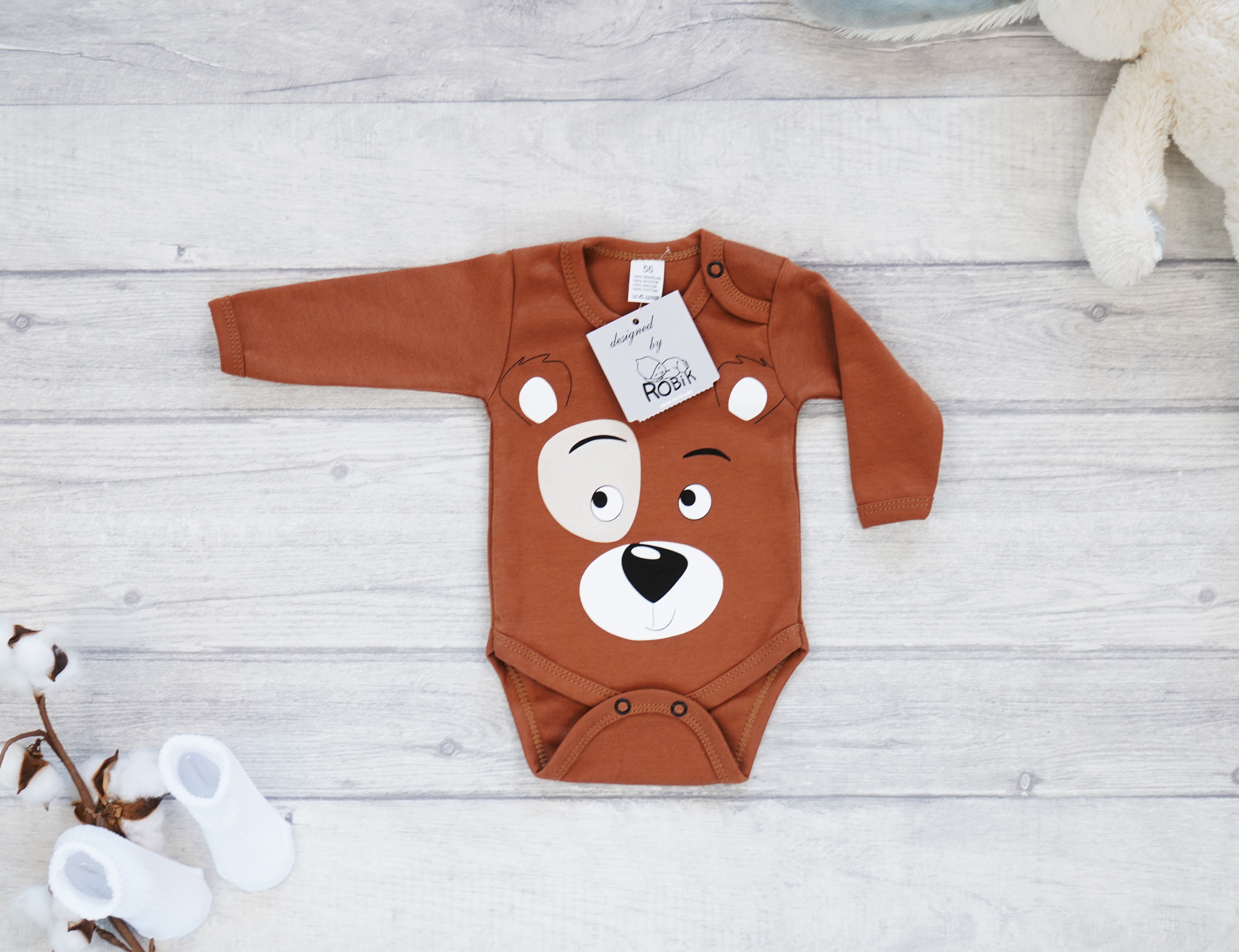 Brązowe BODY MIŚ długi rękaw wzór 602