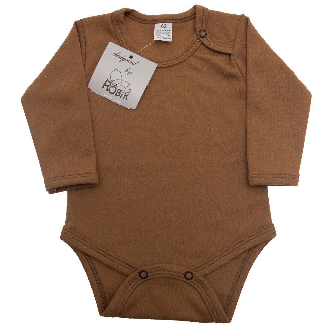 Dziecięce body długi rękaw w kolorze brązowym.