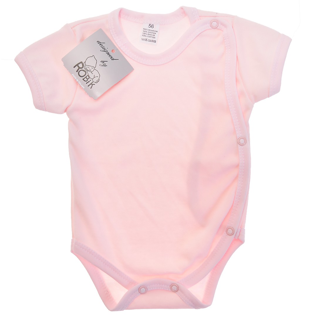 Jednokolorowe body z krótkim rękawem o kroju kopertowym, zapinane na dwie pary bezniklowych napek po bokach oraz dwie napki w kroku co znacznie ułatwia zakładanie ubranka. W środku niepełna koperta. Kopertowe body dla niemowlaka uszyte z różowej bawełny to produkt polski. Elastyczny, wysokiej jakości materiał gwarantuje wygodę i swobodne ruchy dziecka oraz odpowiednią termoregulację.