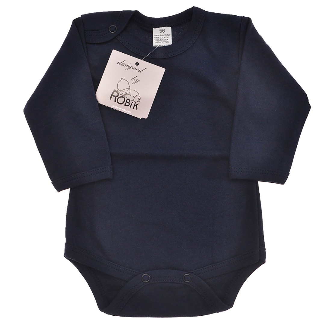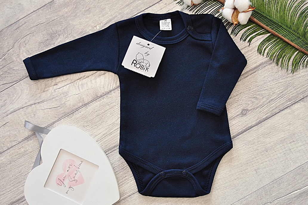Dziecięce body długi rękaw w kolorze granatowym.
