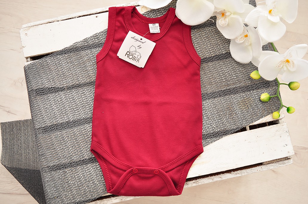 Dziecięce body na ramiączka w kolorze bordowym.