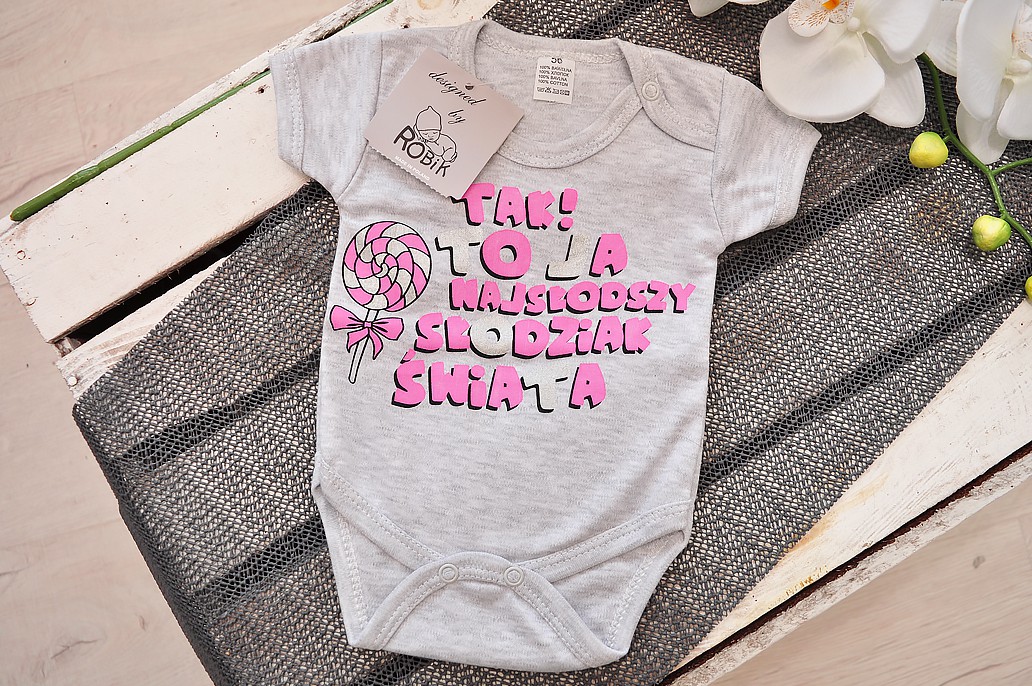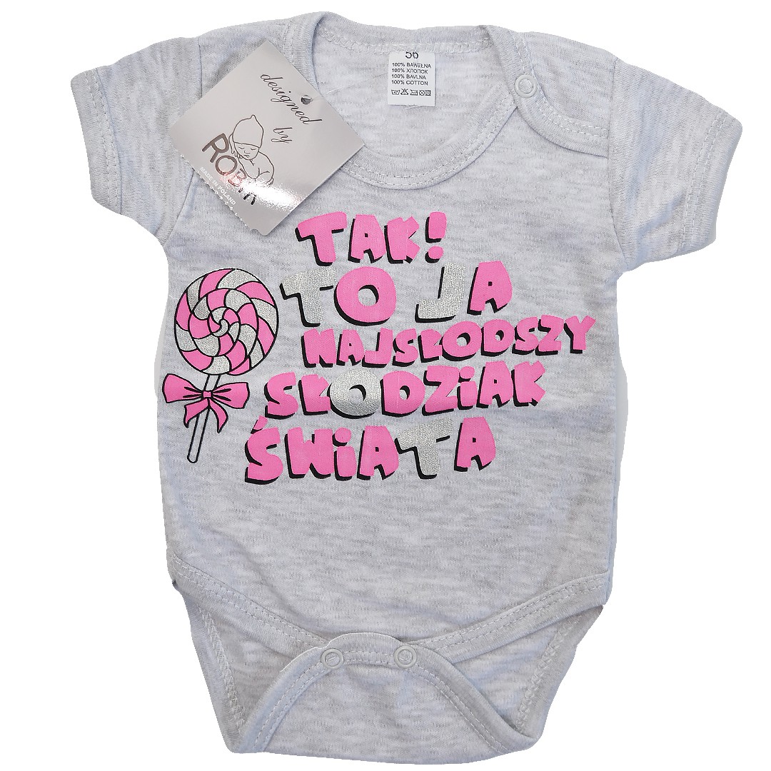 Szare BODY "...NAJSŁODSZY SŁODZIAK ŚWIATA" krótki rękaw LATO wzór 622kr