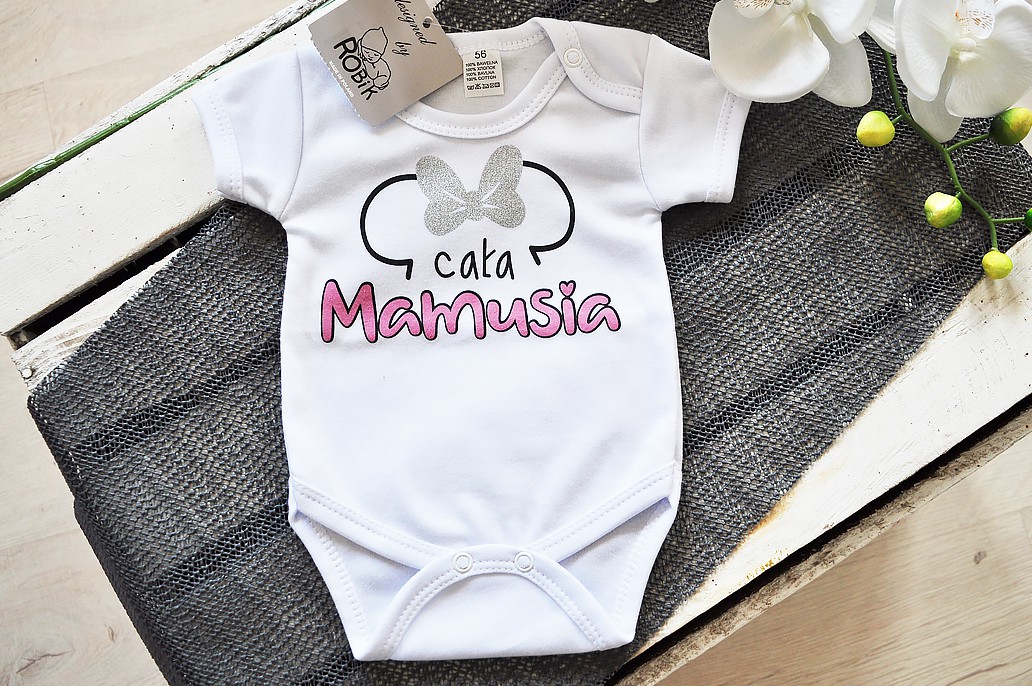 Body dziewczęce z krótkim rękawem z napisem CAŁA MAMUSIA.