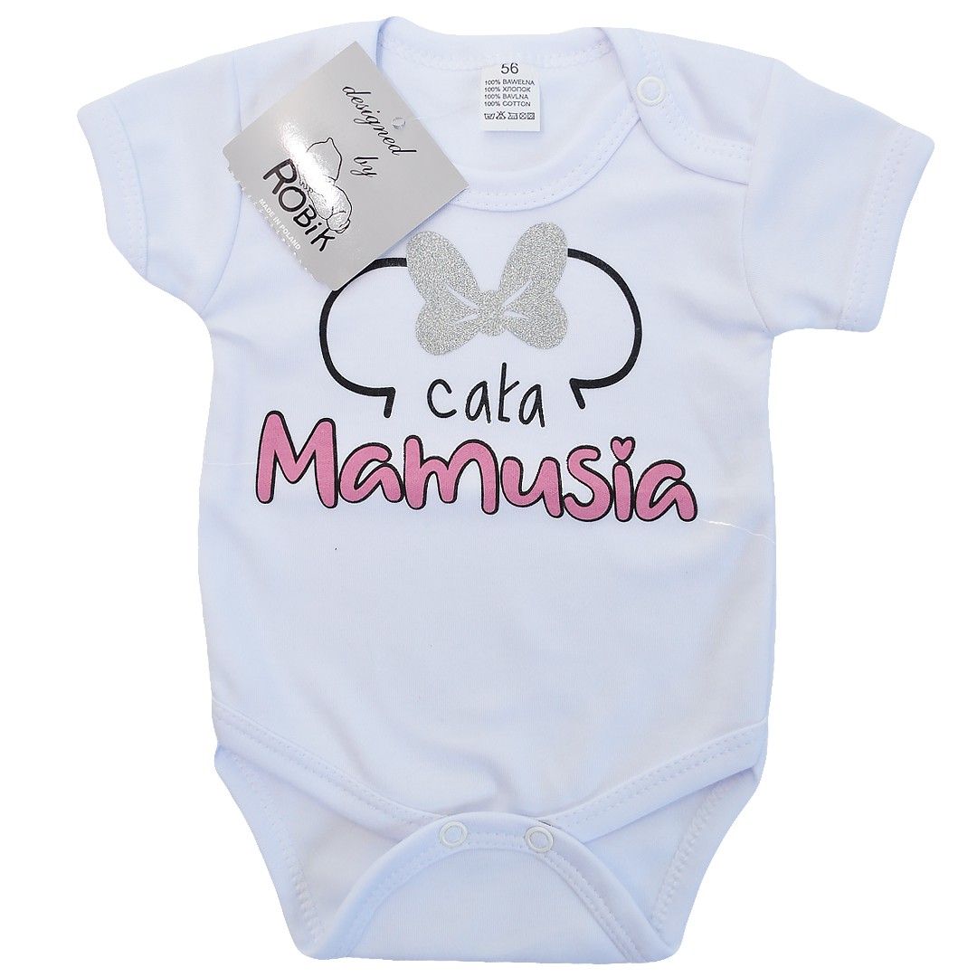 Białe BODY CAŁA MAMUSIA krótki rękaw LATO wzór 623kr