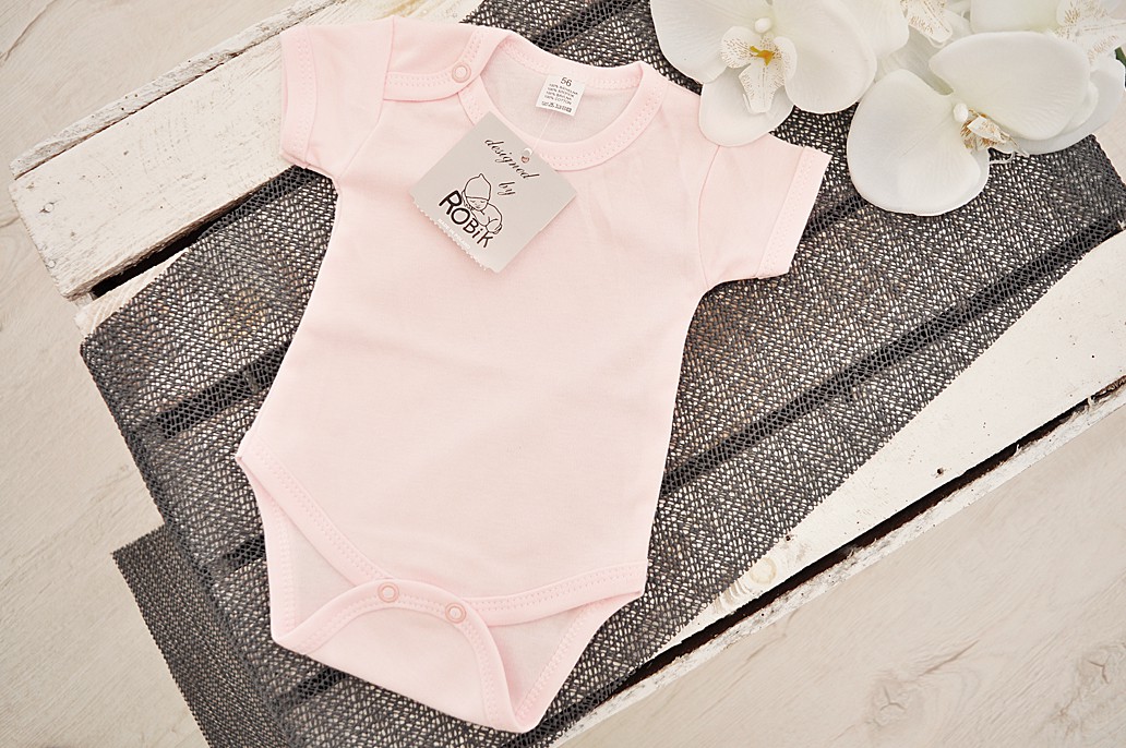 Dziecięce body w kolorze pudrowego różu, krótki rękaw.