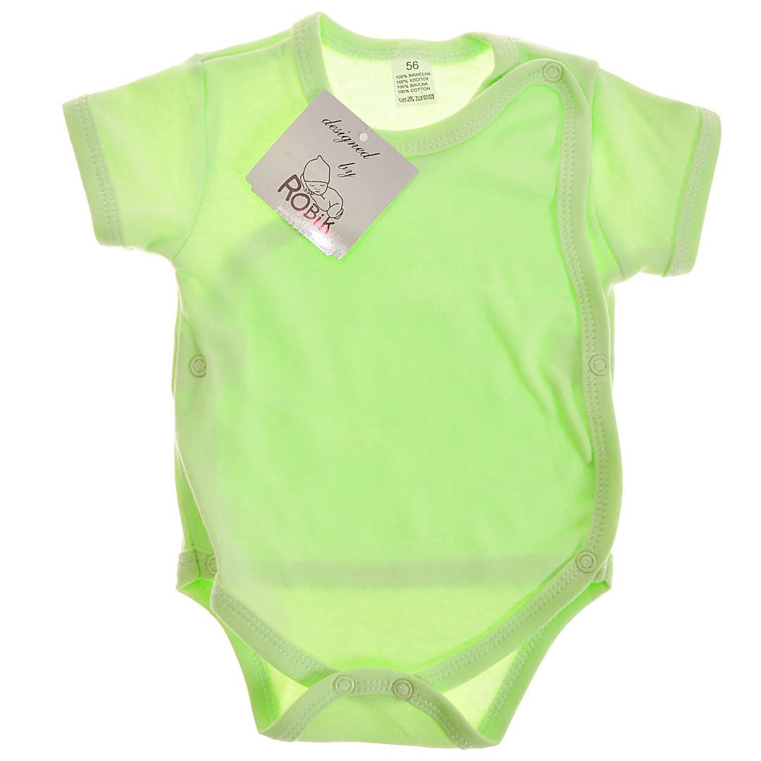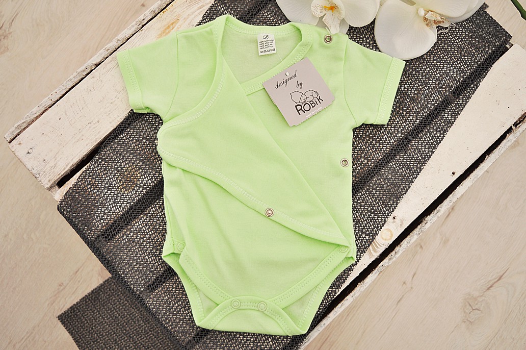 Niemowlęce body kopertowe z krótkim rękawem w kolorze pistacjowej zieleni.