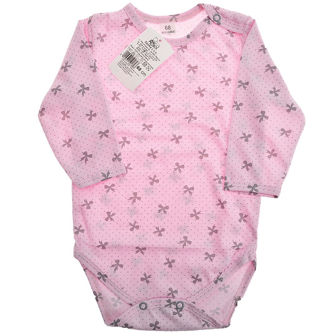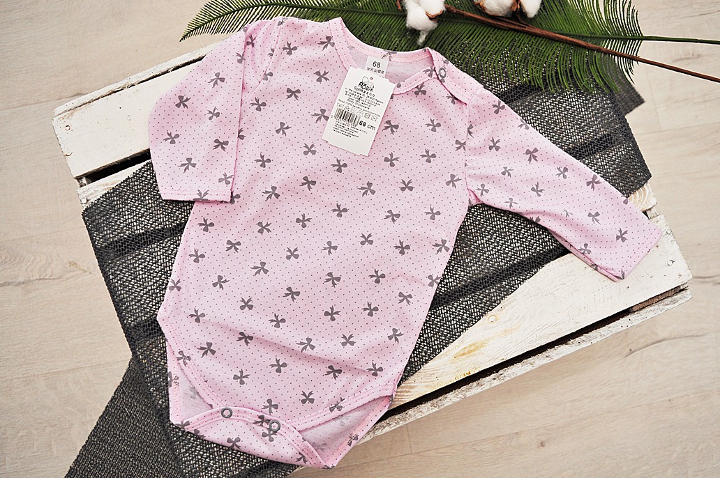 Różowe body dziewczęce z długim rękawem w kokardki.