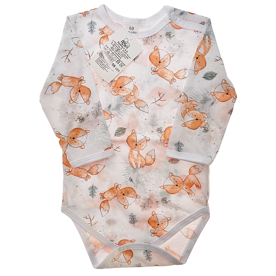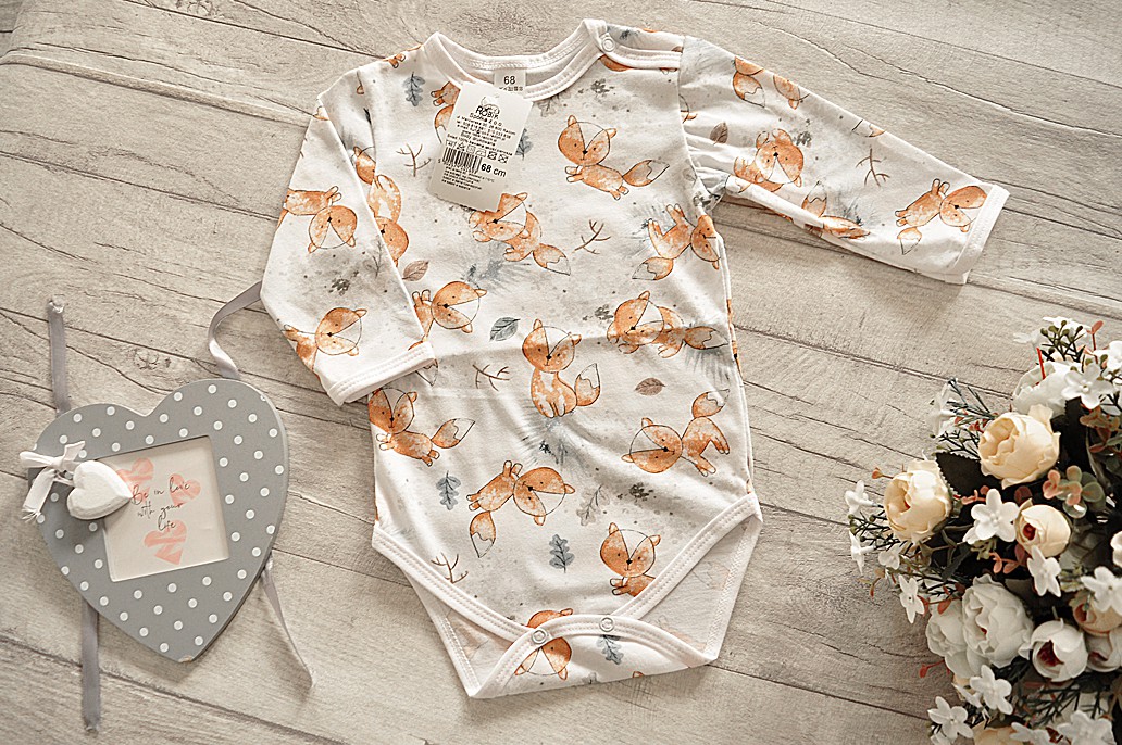 Body bawełniane z nadrukiem lisków wykończone białą lamówką. Niezwykle wygodne i przewiewne klasyczne body dziecięce zapinane na ramieniu oraz w kroku na zatrzaski zapewniają komfort i swobodę ruchów. Obecne są w trakcie kompletowania wyprawki dla noworodka i nie może ich zabraknąć w szafie niemowlaka. Body dziecięce to doskonały wybór sprawdzający się aż do momentu, w którym maluch nauczy się korzystać z nocnika.