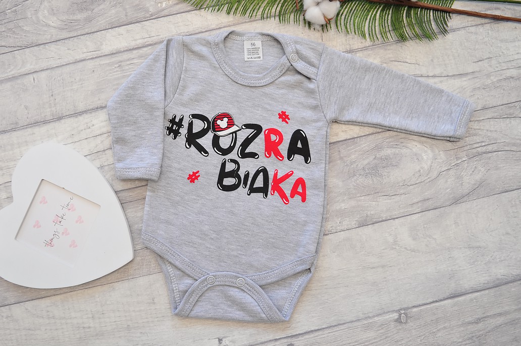 Bawełniane body z szarej dzianiny z nadrukiem wykonanym trwałą, bezpieczną dla dziecka metodą sitodruku. Niezwykle wygodne i przewiewne klasyczne body dziecięce zapinane na ramieniu oraz w kroku na zatrzaski zapewniają komfort i swobodę ruchów. Obecne są w trakcie kompletowania wyprawki dla noworodka i nie może ich zabraknąć w szafie niemowlaka. Body dziecięce to doskonały wybór sprawdzający się aż do momentu, w którym maluch nauczy się korzystać z nocnika.