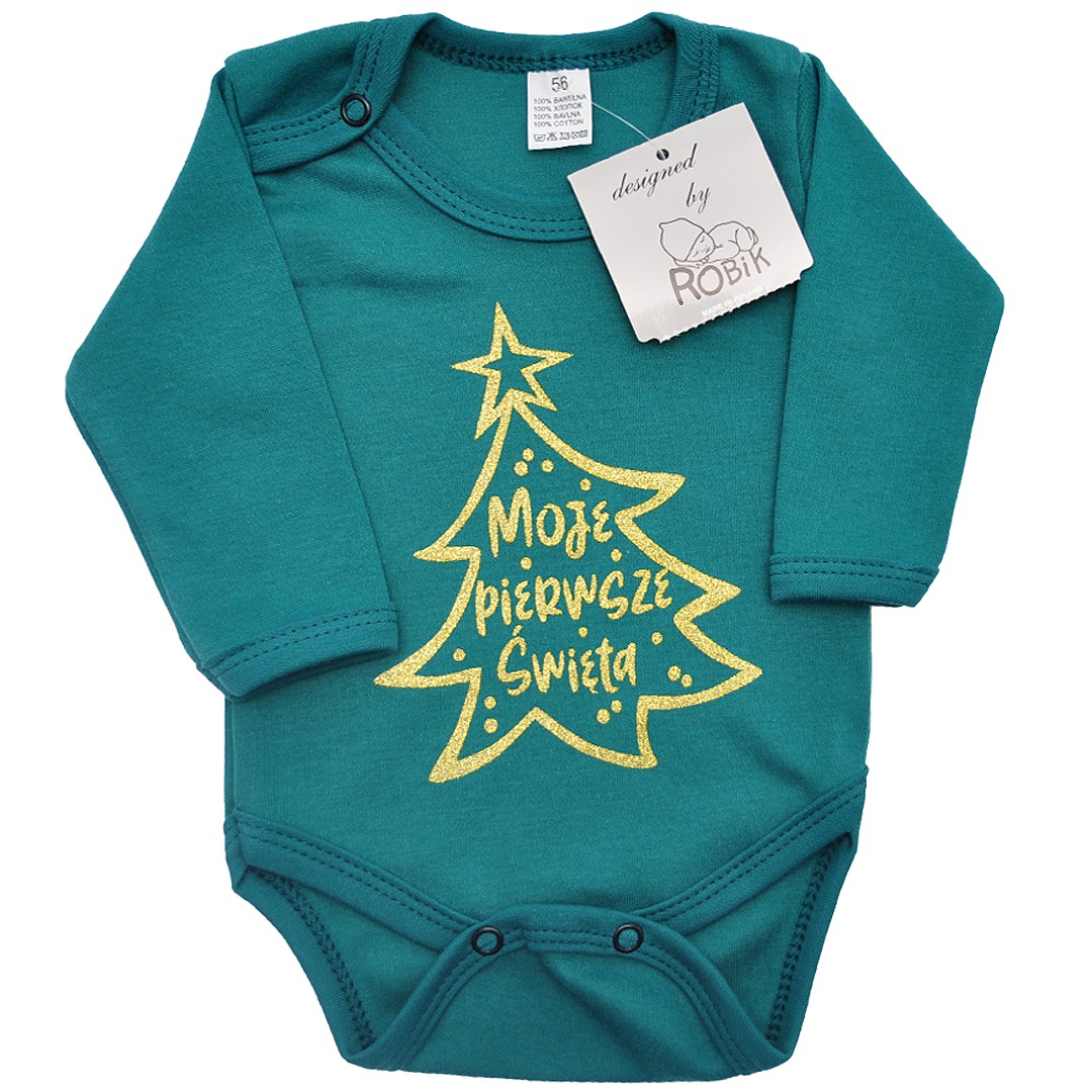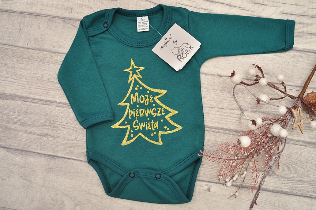 Butelkowe BODY na święta choinka Moje Pierwsze Święta, brokat