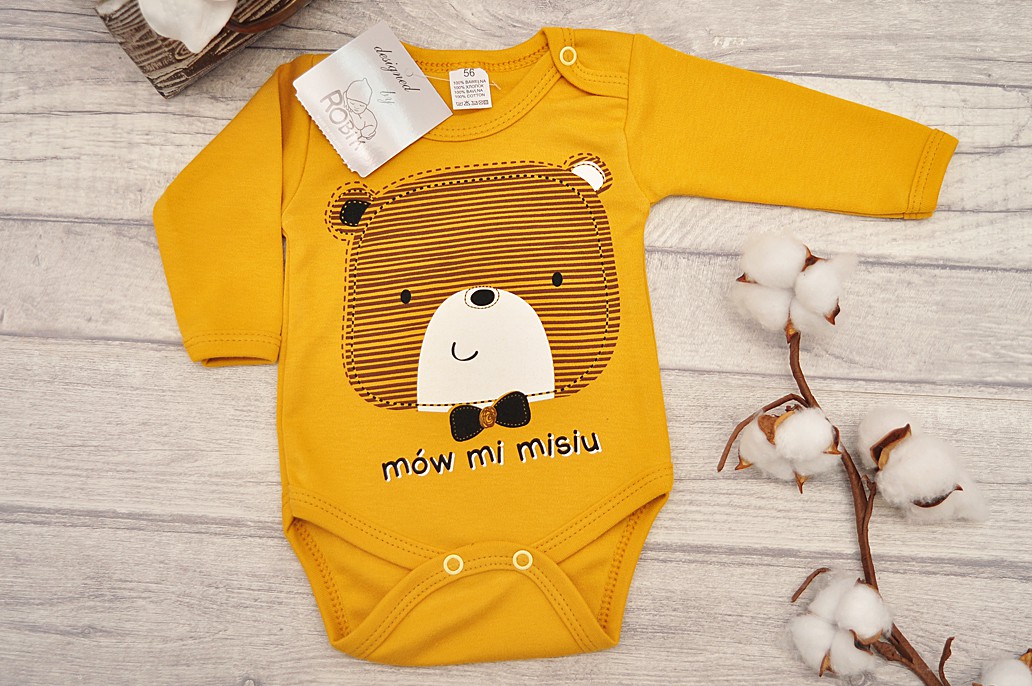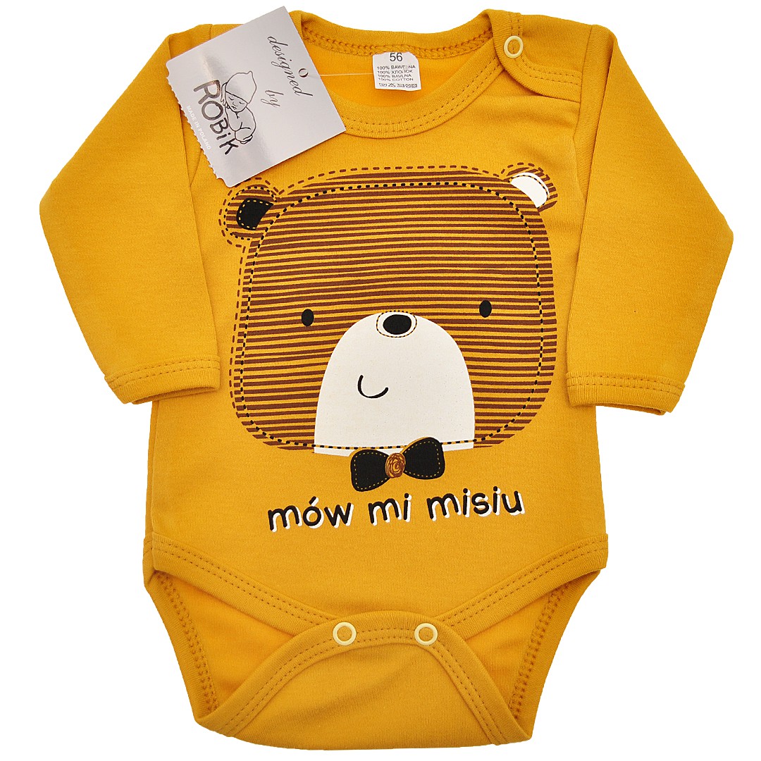Musztardowe BODY MÓW MI MISIU długi rękaw wzór 637