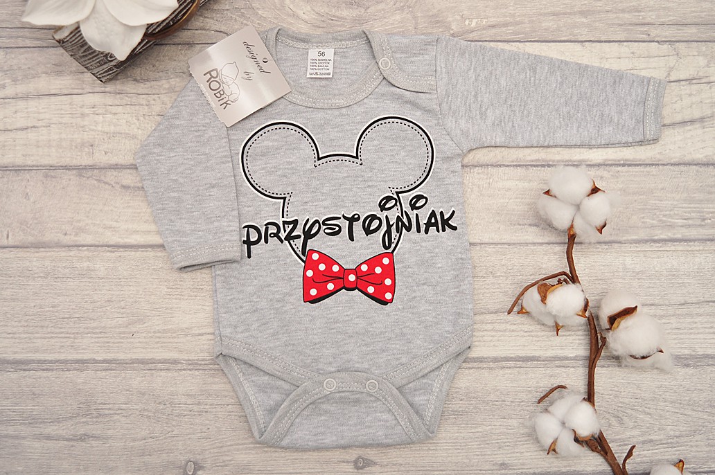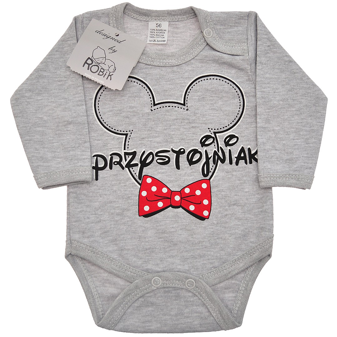 Body dla chłopca z długim rękawem z MYSZKĄ i napisem: PRZYSTOJNIACZEK