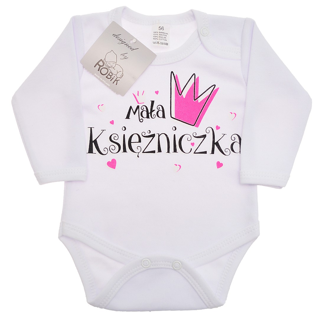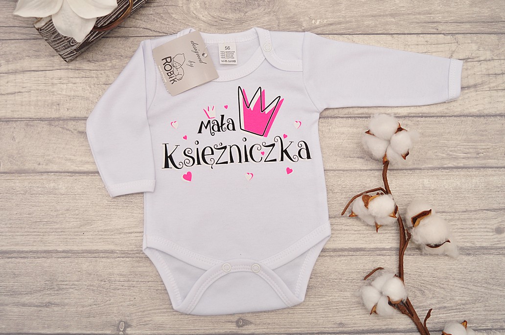 Body dla dziewczynki z długim rękawem z KORONĄ i napisem: MAŁA KSIĘŻNICZKA