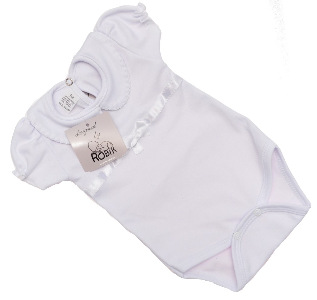 BIAŁE BODY ZOSIA KRÓTKI RĘKAW Z KOŁNIERZYKIEM I KOKARDKĄ NA CHRZEST