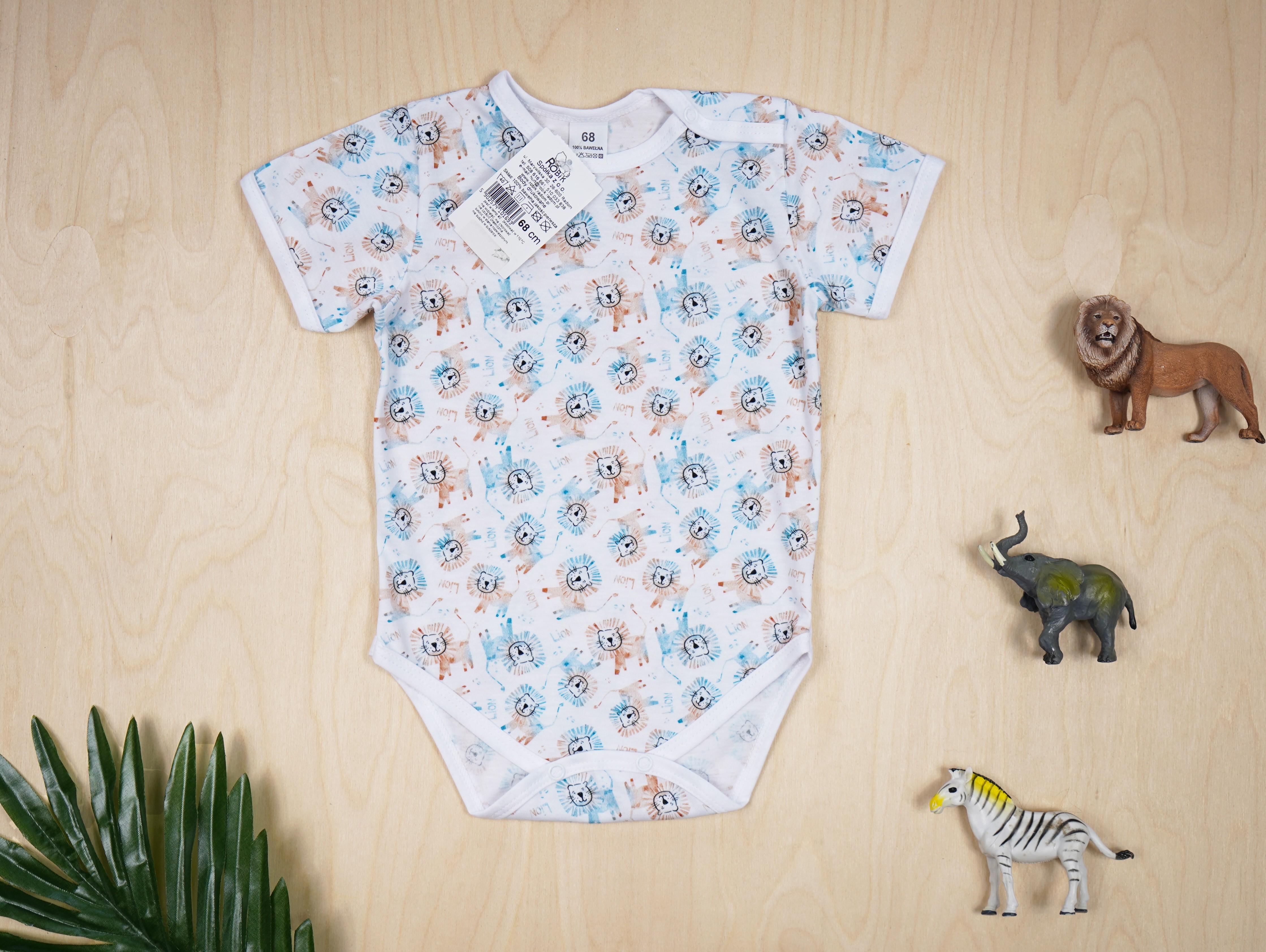 Niemowlęce body klasyczne z krótkim rękawem w lwy.