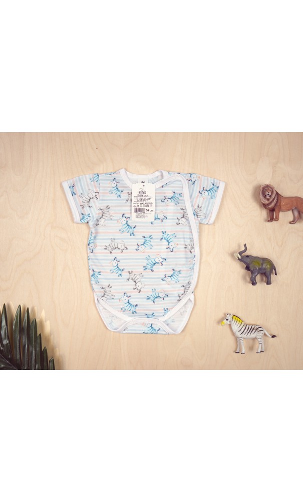 Niemowlęce body kopertowe z krótkim rękawem w paski i zebry.