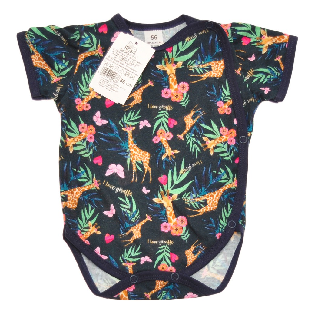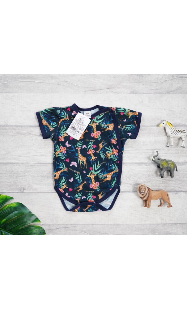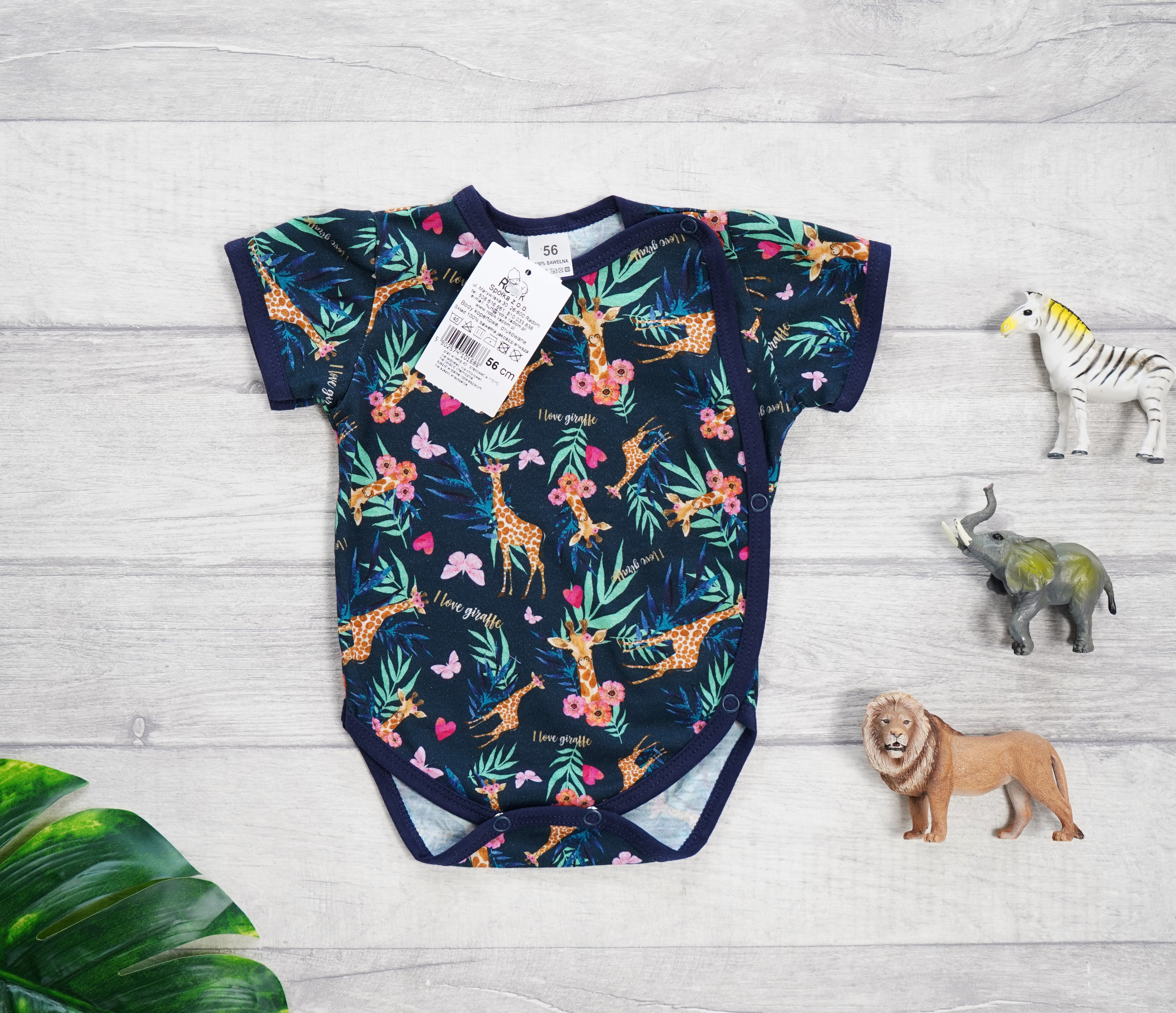 Niemowlęce body kopertowe z krótkim rękawem w żyrafy.