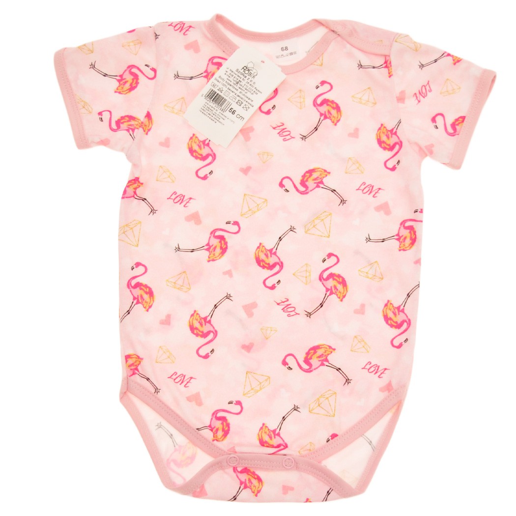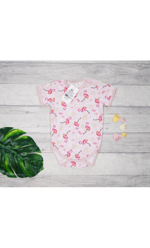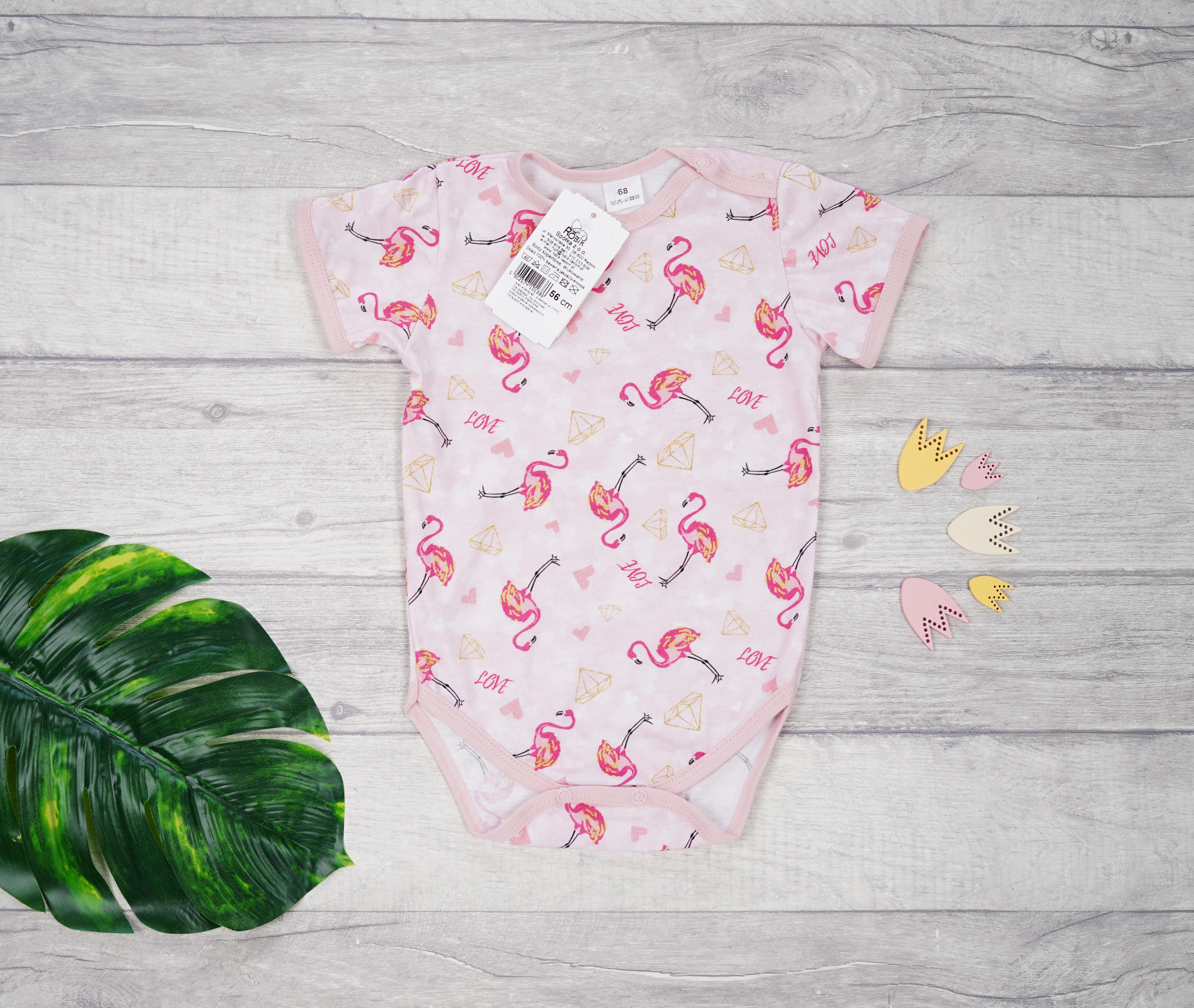 Niemowlęce body klasyczne z krótkim rękawem we flamingi.