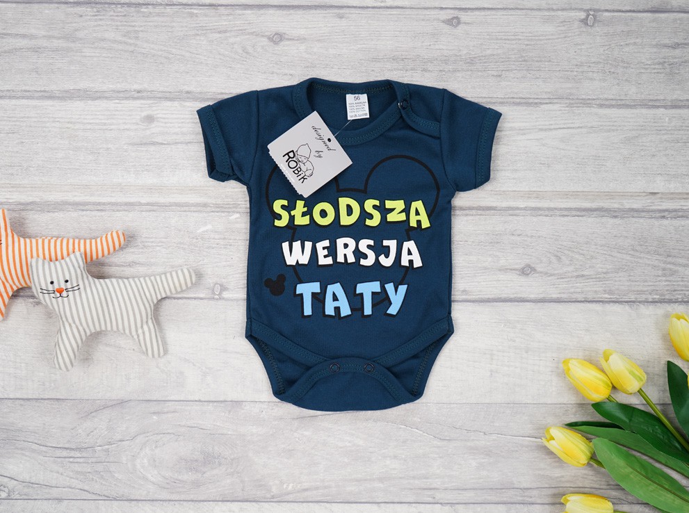 Body dziecięce z krótkim rękawem z nadrukiem: SŁODSZA WERSJA TATY.