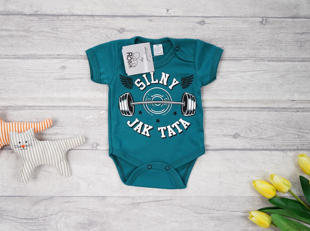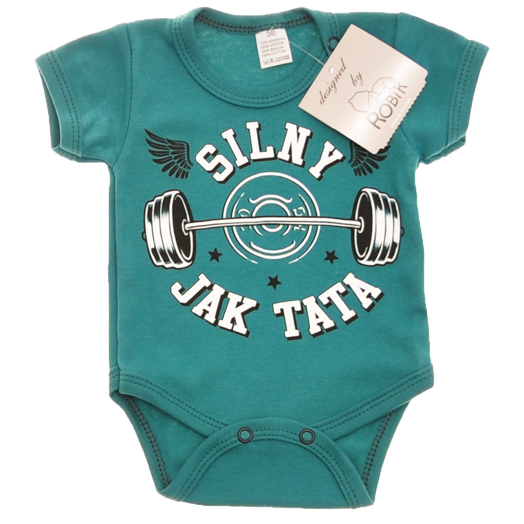 Body dziecięce z krótkim rękawem z nadrukiem: SILNY JAK TATA