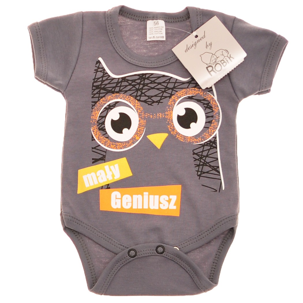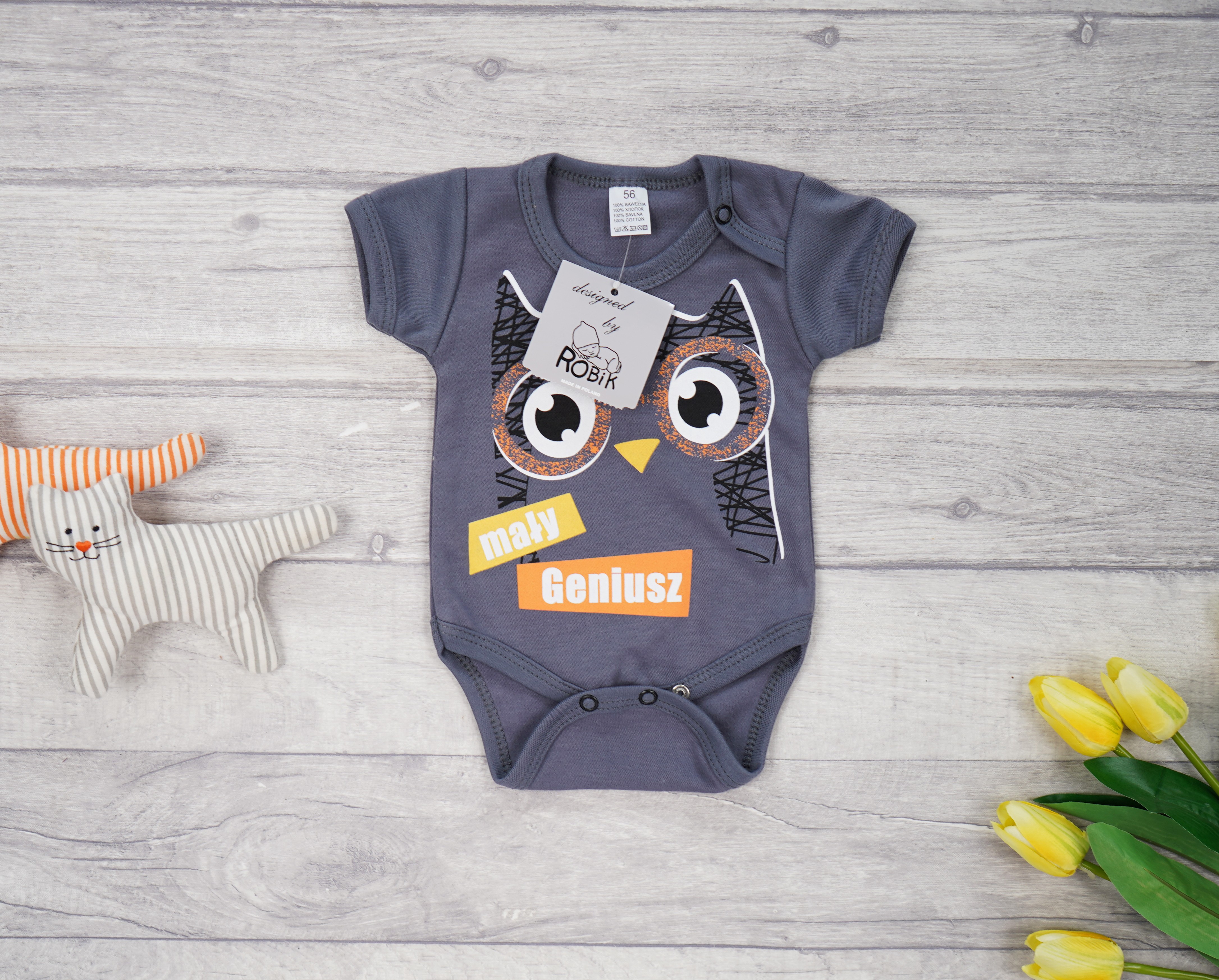 BODY MAŁY GENIUSZ sowa grafitowe wzór 650 krótki rękaw