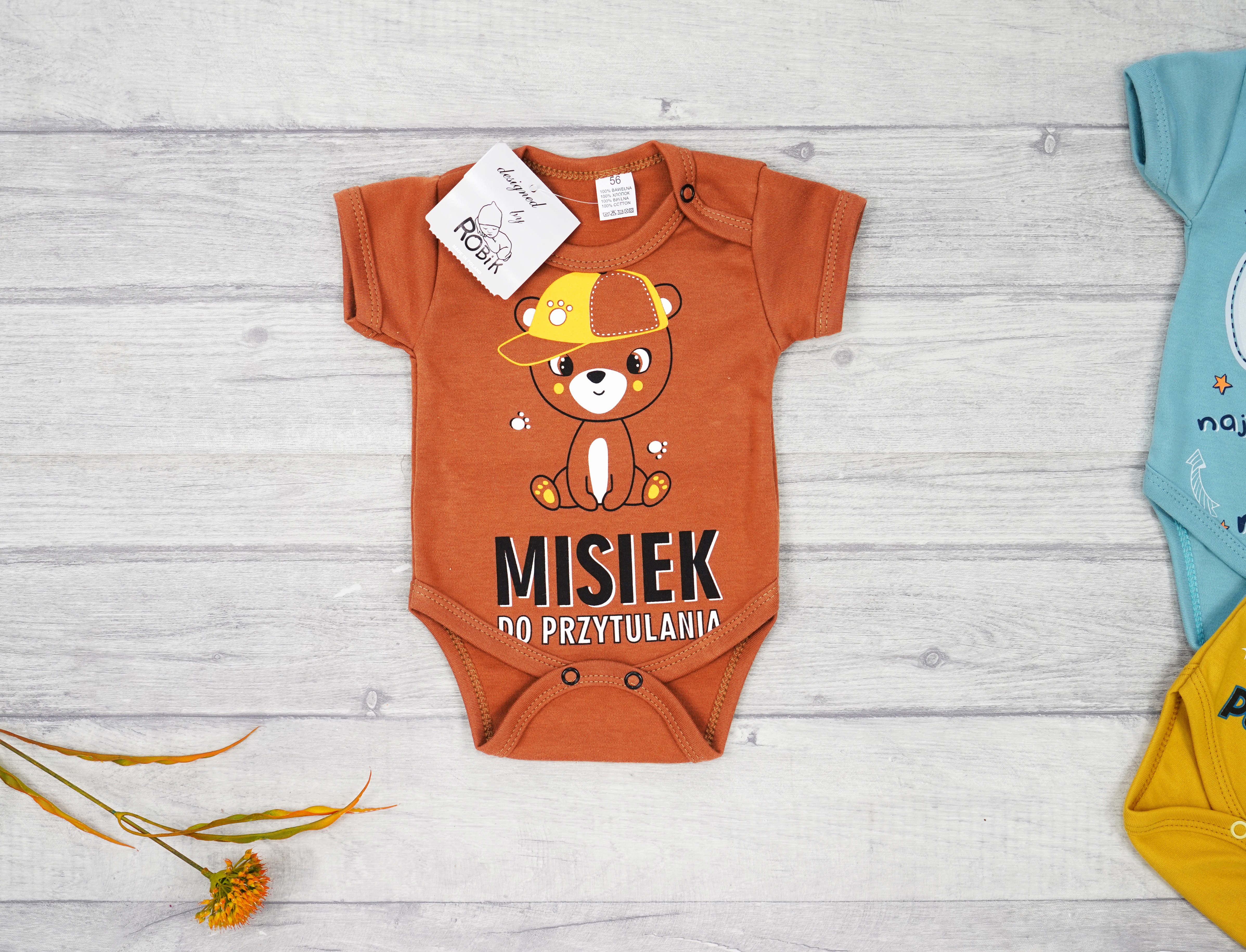 Body dziecięce z krótkim rękawem z nadrukiem: MISIEK DO PRZYTULANIA