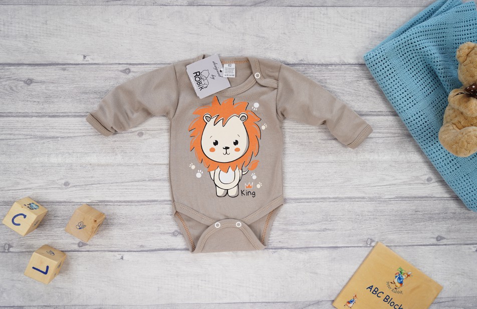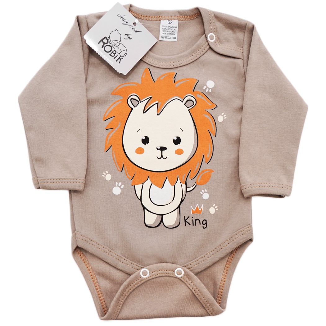 Body dziecięce kawowe z długim rękawem, lwem i napisem: KING