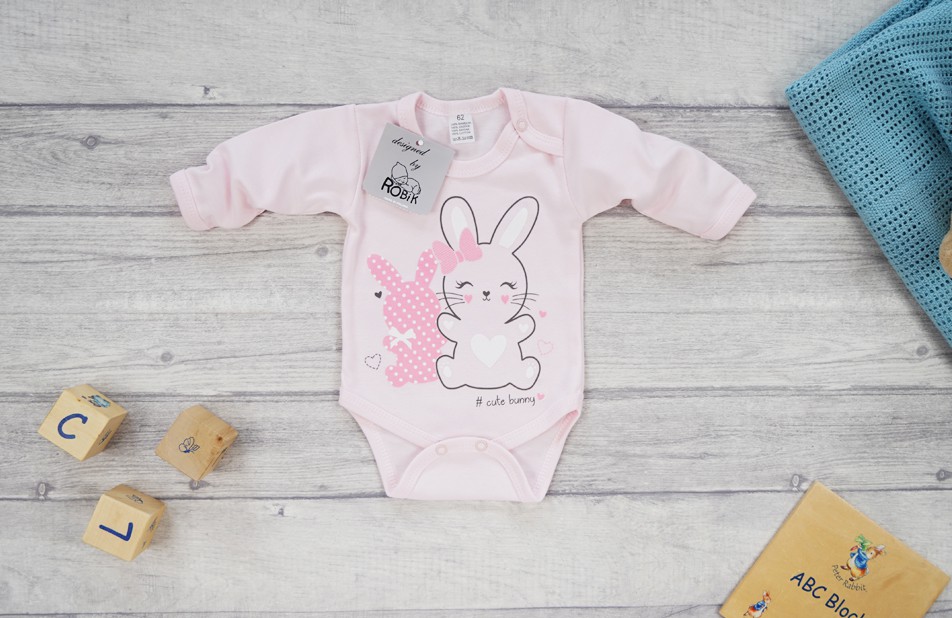 Pudrowe BODY CUT BUNNY króliczki długi rękaw wzór 698
