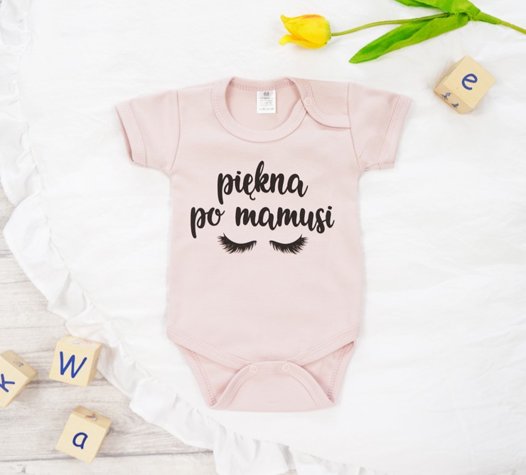 Body dziecięce z krótkim rękawem z nadrukiem: PIĘKNA PO MAMUSI