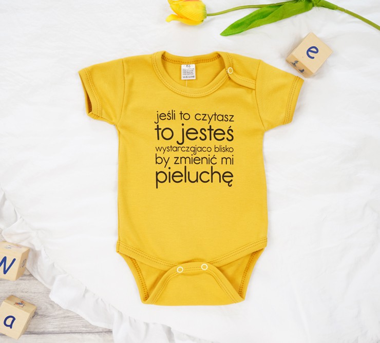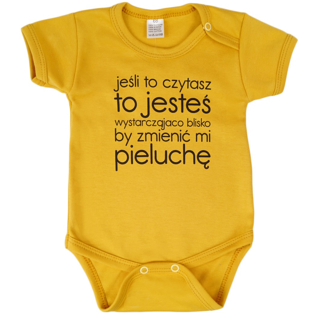 Body dziecięce z krótkim rękawem z nadrukiem: JEŚLI TO CZYTASZ TO JESTEŚ WYSTARCZAJĄCO BLISKO BY ZMIENIĆ MI PIELUCHĘ.