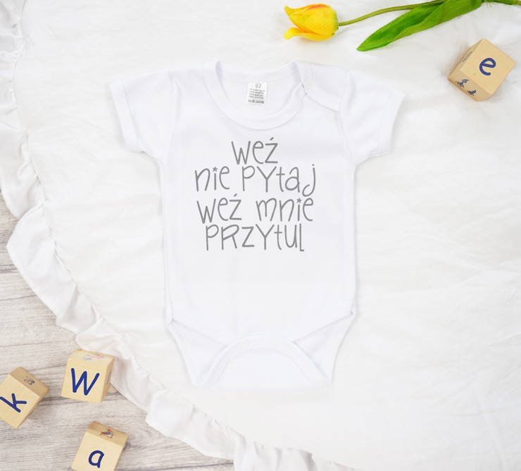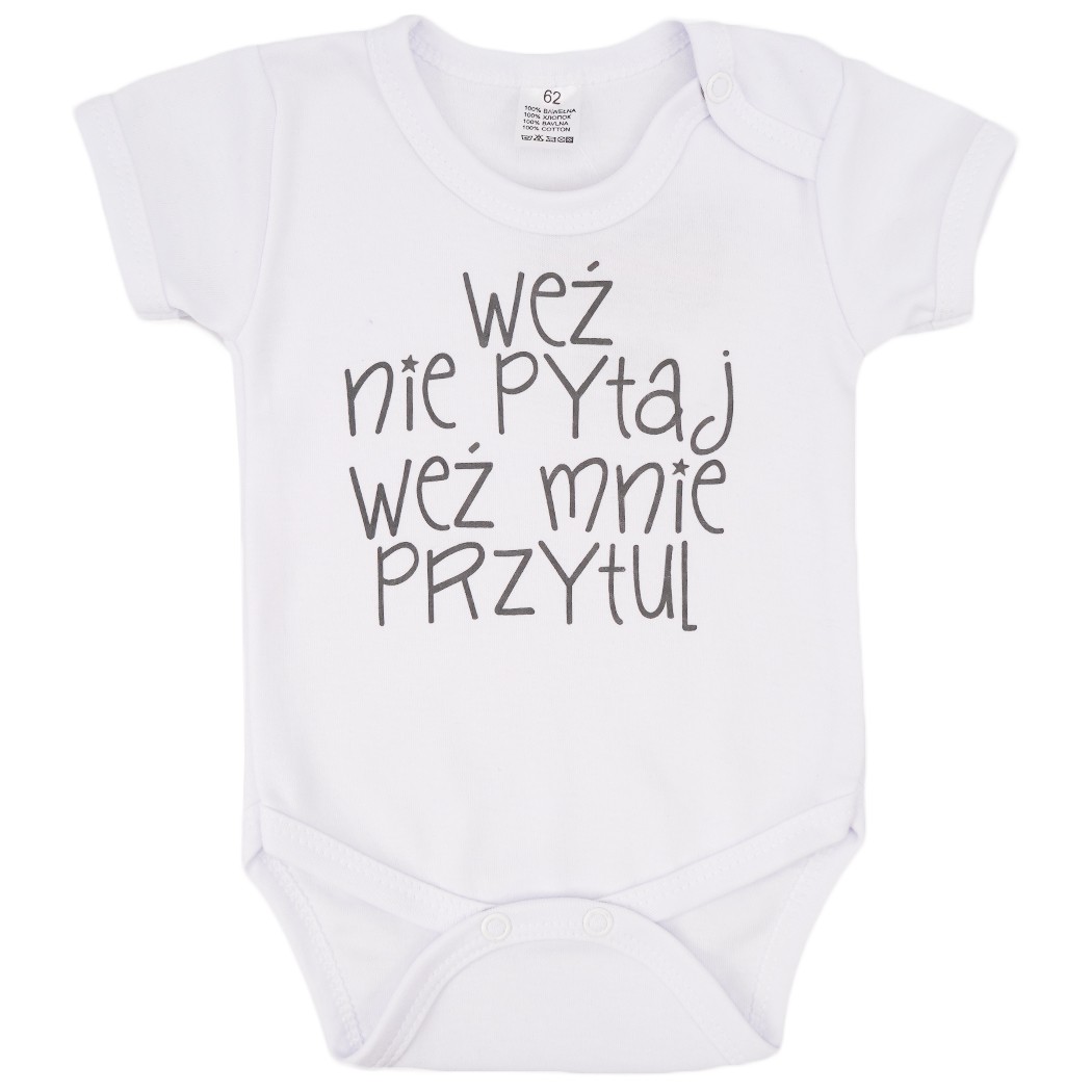 Body dziecięce z krótkim rękawem z nadrukiem: WEŹ NIE PYTAJ, WEŹ MNIE PRZYTUL